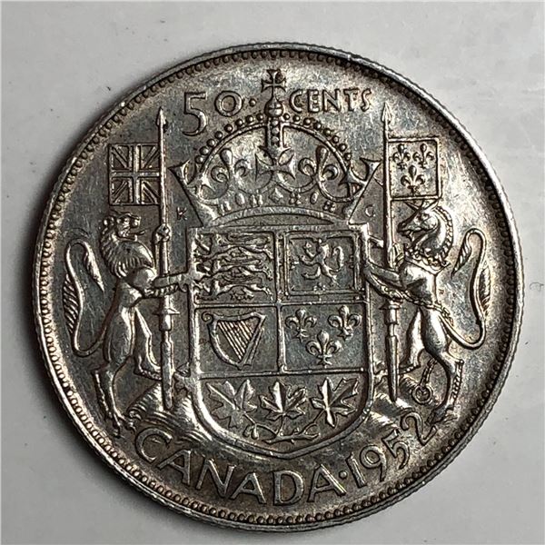 1953 Queen Elizabeth 50 Cents Large Date Shoulder Fold UNC