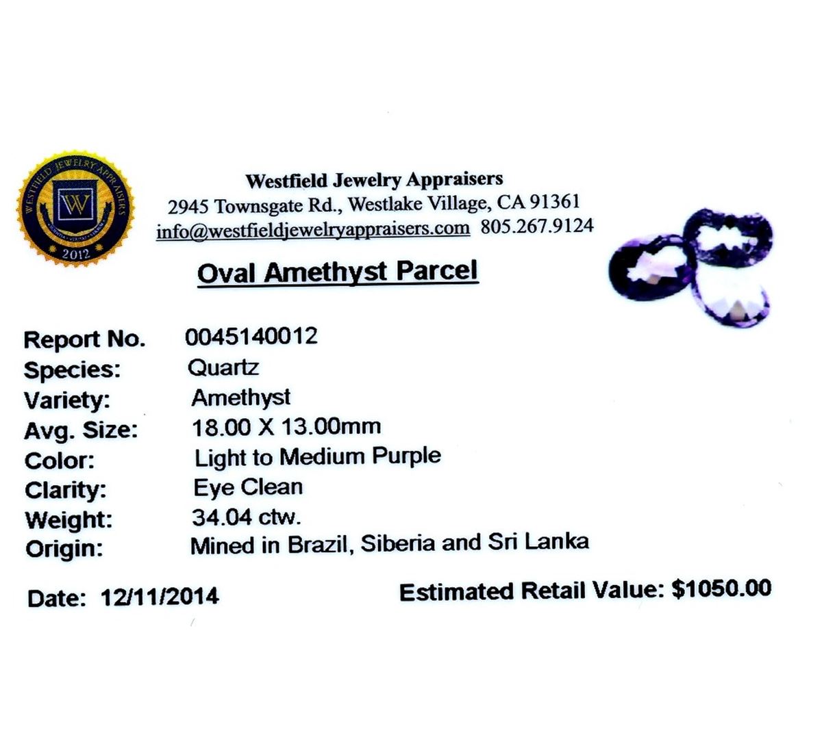 34.04ctw. Oval Amethyst Parcel Westfield Appraised at $1,050.00.