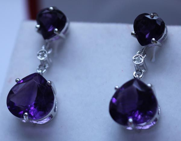 34.05 CTW AMETHYST AND DIAMOND EARRINGS .925 STERLING S **|**|** 34.05 CTW AMETHYST AND DIAMOND DANGLING EARRINGS .925 STERLING SILVER; CENTERSTONE 11.5 CTW; DIAMOND 0.03 CTW ; MSRP: $600