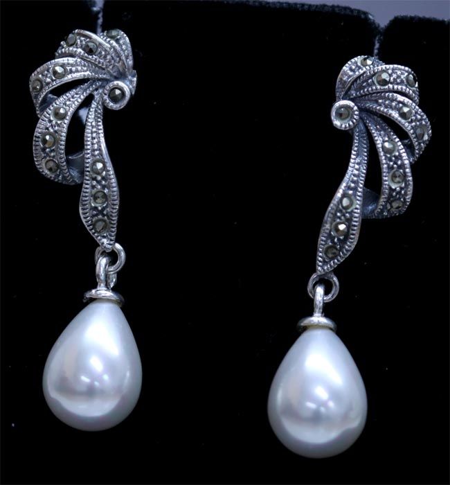 34.05 CTW PEARL ANTIQUE LOOKING JEWELRY .925 STERLING S **|**|** 34.05 CTW PEARL EARRINGS ANTIQUE LOOKING JEWELRY .925 STERLING SILVER ; MSRP: $200