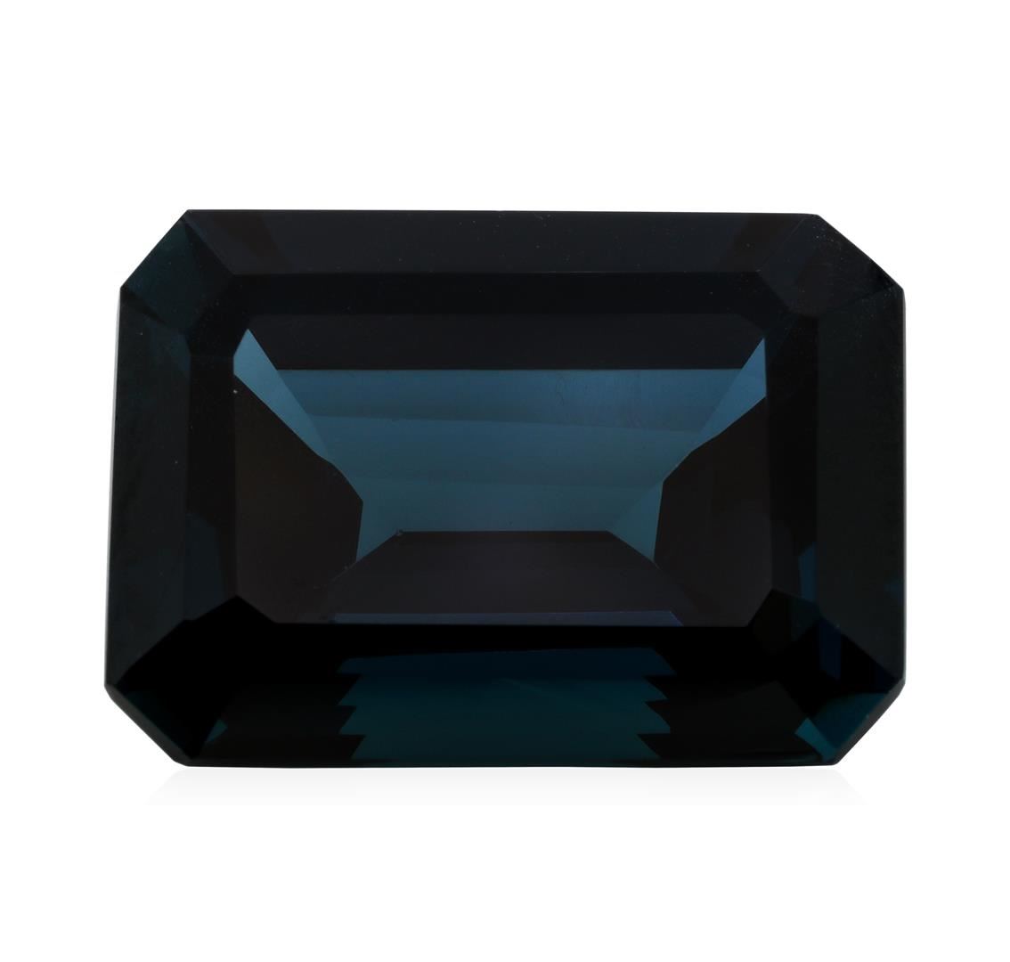 One natural emerald cut london blue topaz with an exact weight of 34.09ct., clarity is eye clean, greenish blue, dark. Gemological Appraisals Services estimates the retail value at $681.8 GAS Appraised.