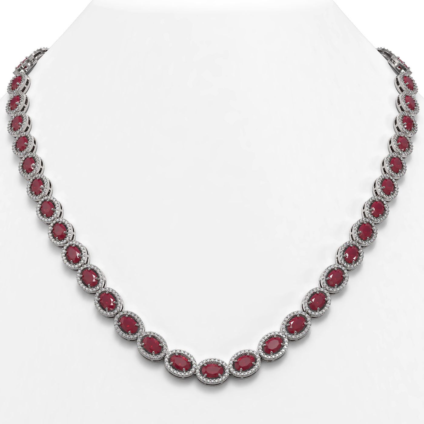 REF-672F8M - SKU: 40403 ---- 34.11 ctw Ruby & Diamond Micro Pave Halo Necklace 10k White Gold