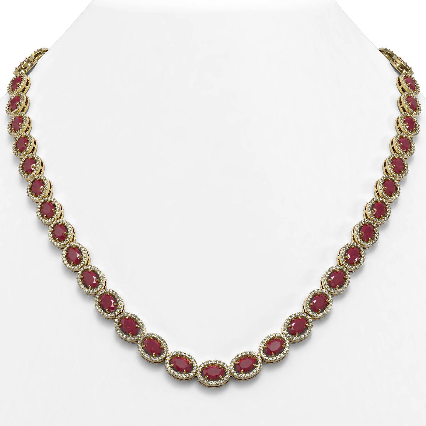 REF-672H8R - SKU: 40405 ---- 34.11 ctw Ruby & Diamond Micro Pave Halo Necklace 10k Yellow Gold