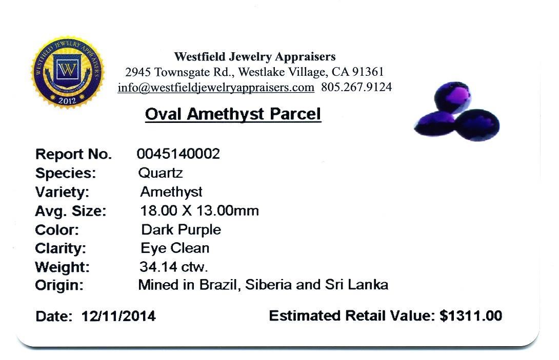 34.14ctw. Oval Amethyst Parcel Westfield Appraised at $1,311.00.
