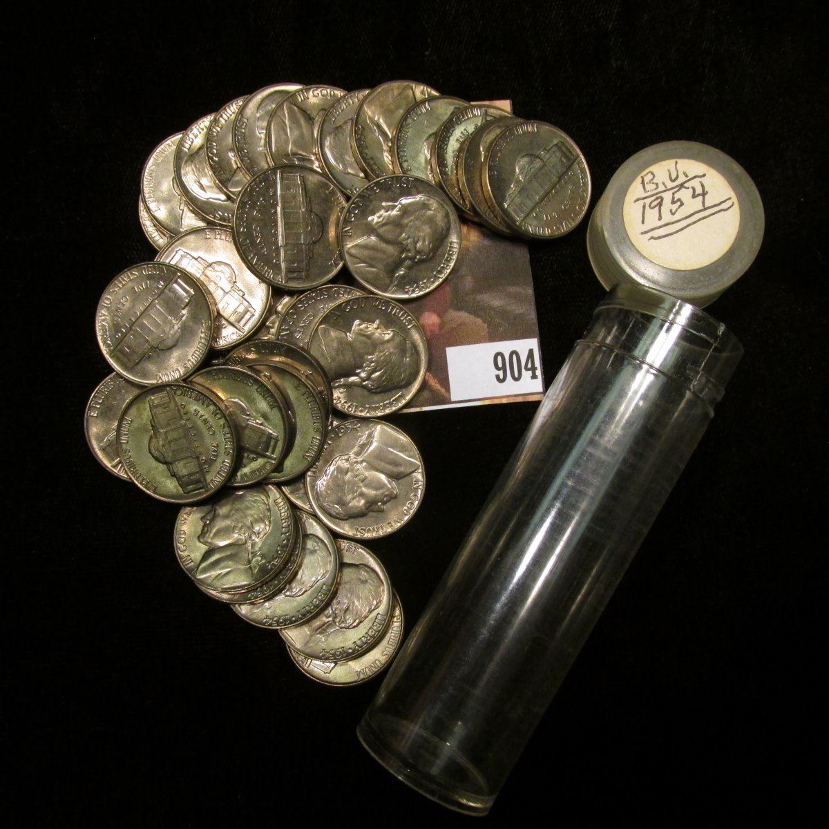 (34) 1954 P Jefferson Nickels in Gem BU condition, stored in a plastic tube.