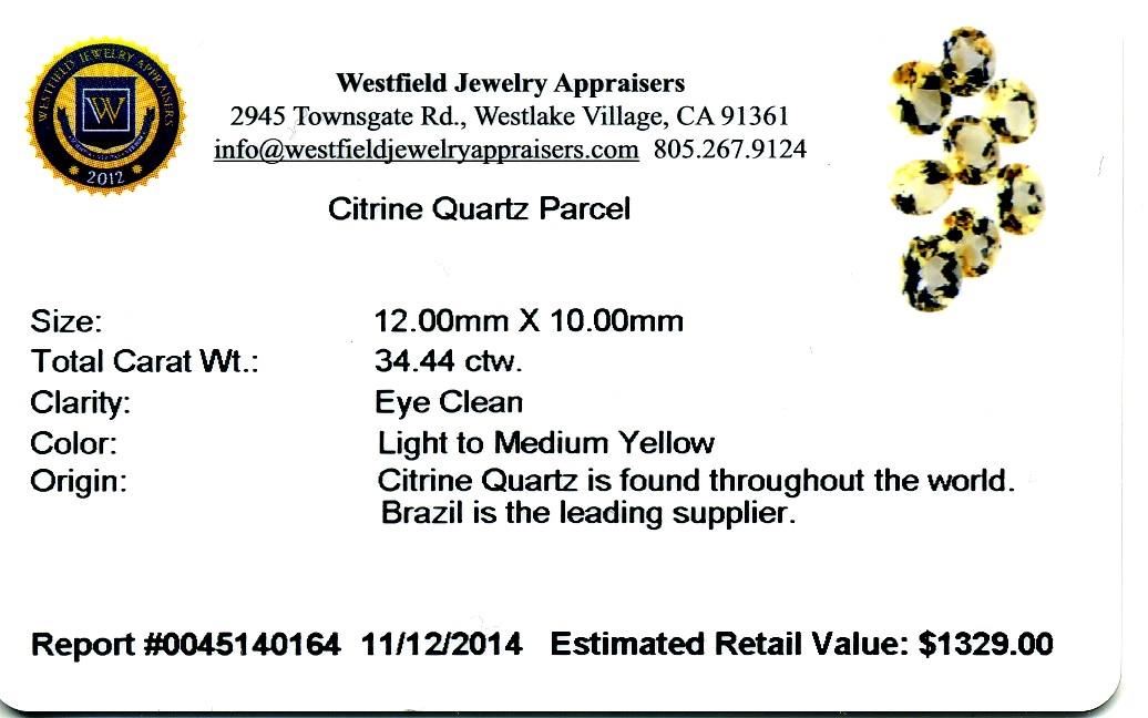 34.44cts Oval Cut Citrine Quartz Parcel. Westfield Appraised at $1,329.00.