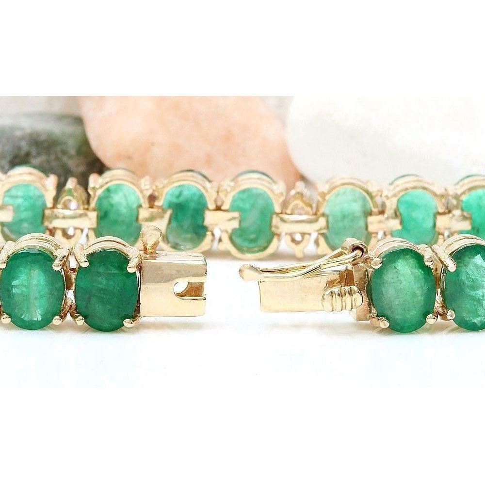 34.68 Carat Natural Emerald 14K Solid Yellow Gold Diamond Bracelet