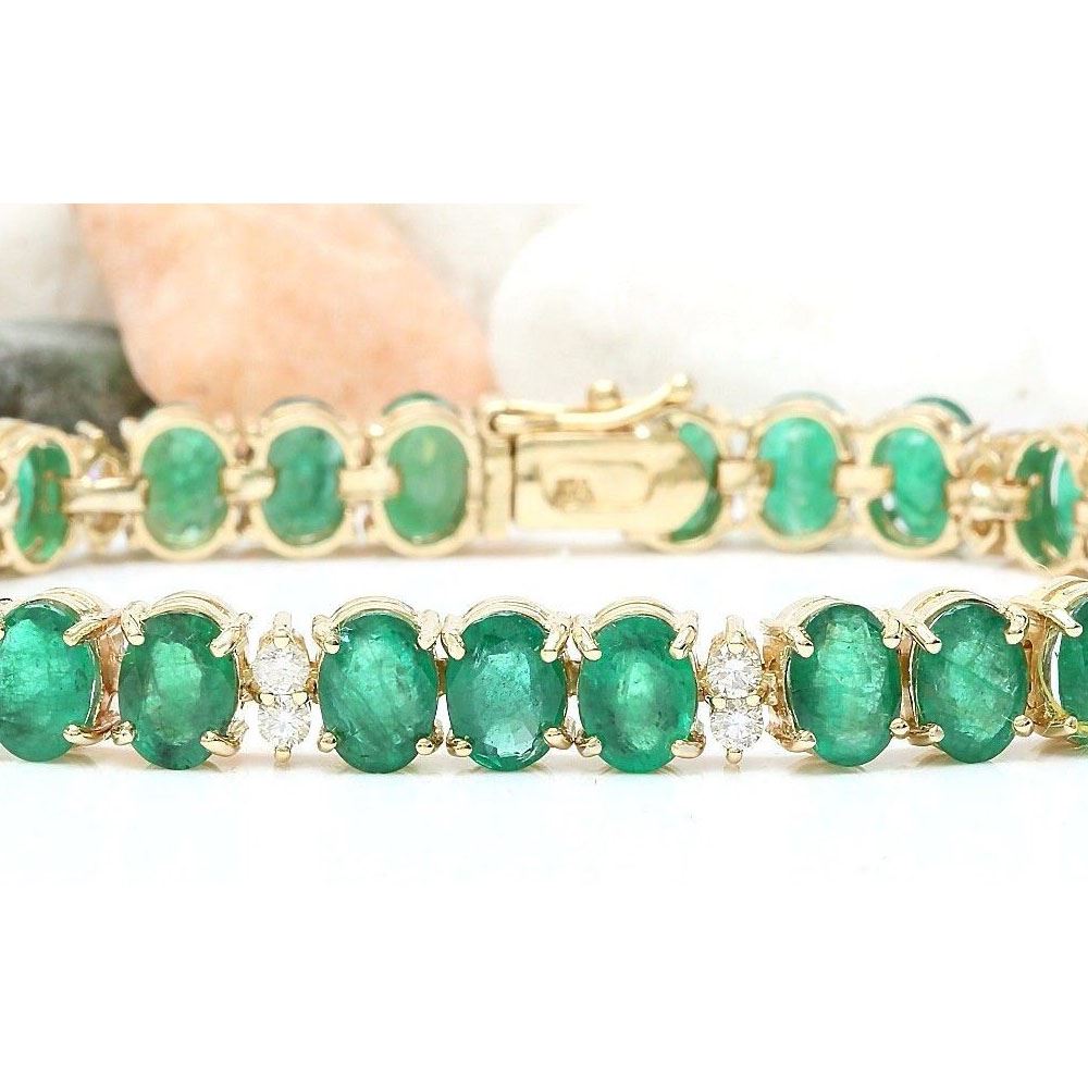 34.68 Carat Natural Emerald 14K Solid Yellow Gold Diamond Bracelet