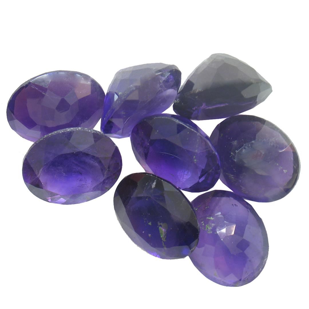Eight oval mixed cut natural amethysts exact total weight 34.73ct., clarity is slightly included, type II, dark, very slightly grayish, purple color, (GIA P 7/3), cut is good. Westfield Appraised at $1,045.00.