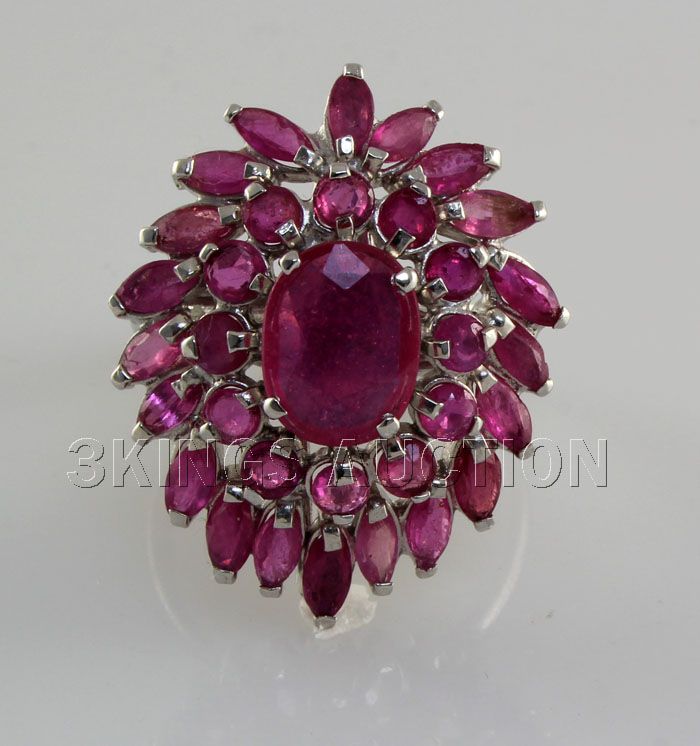 34.73CTW Pretty Pink Ruby Stone in Silver Ring **|**|** Unique Flower Design Pink Ruby Silver Ring; Size: oval 10x8mm*round 3mm*mq 4x2mm; ctw: 7.55; stone count: 33; gram weight: 5.44; ring size: 8.5 ; MSRP: $1500