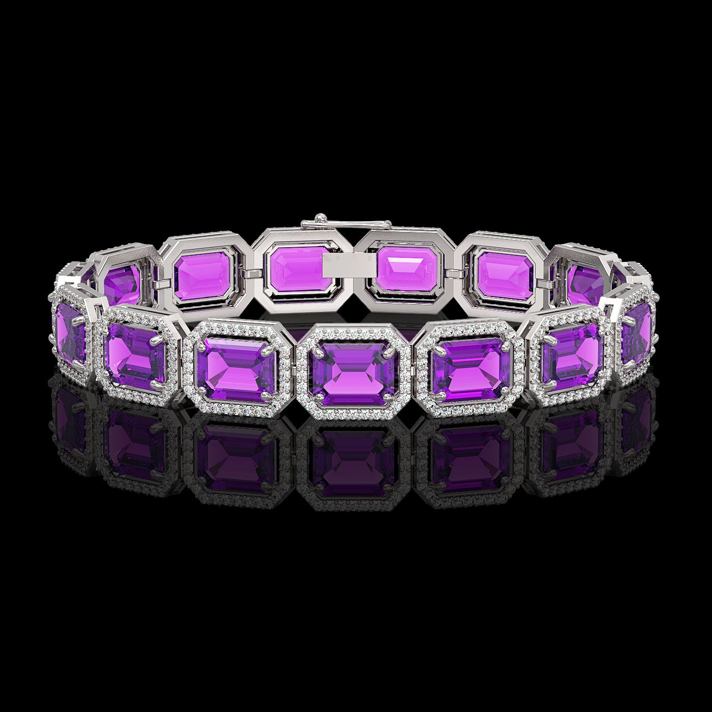 REF-345Y5X - SKU: 41561 ---- 34.86 ctw Amethyst & Diamond Micro Pave Halo Bracelet 10k White Gold