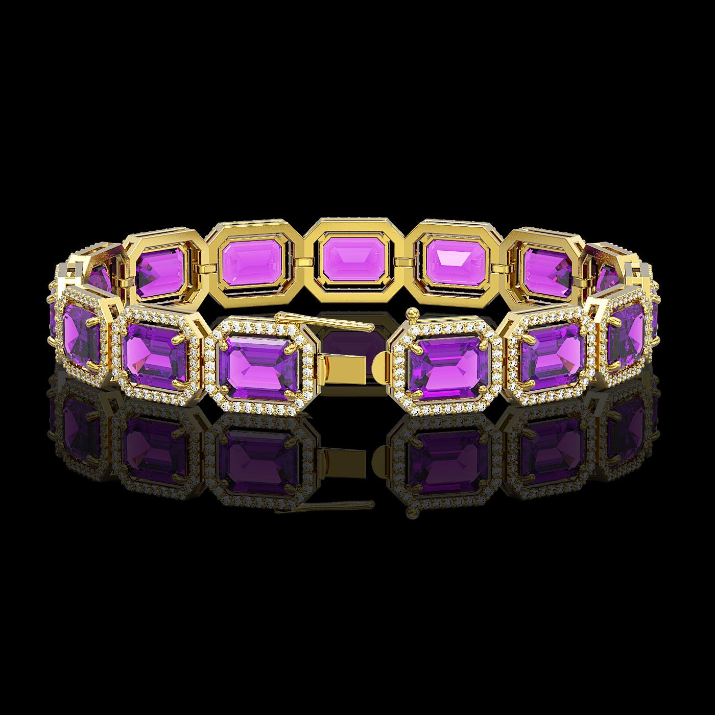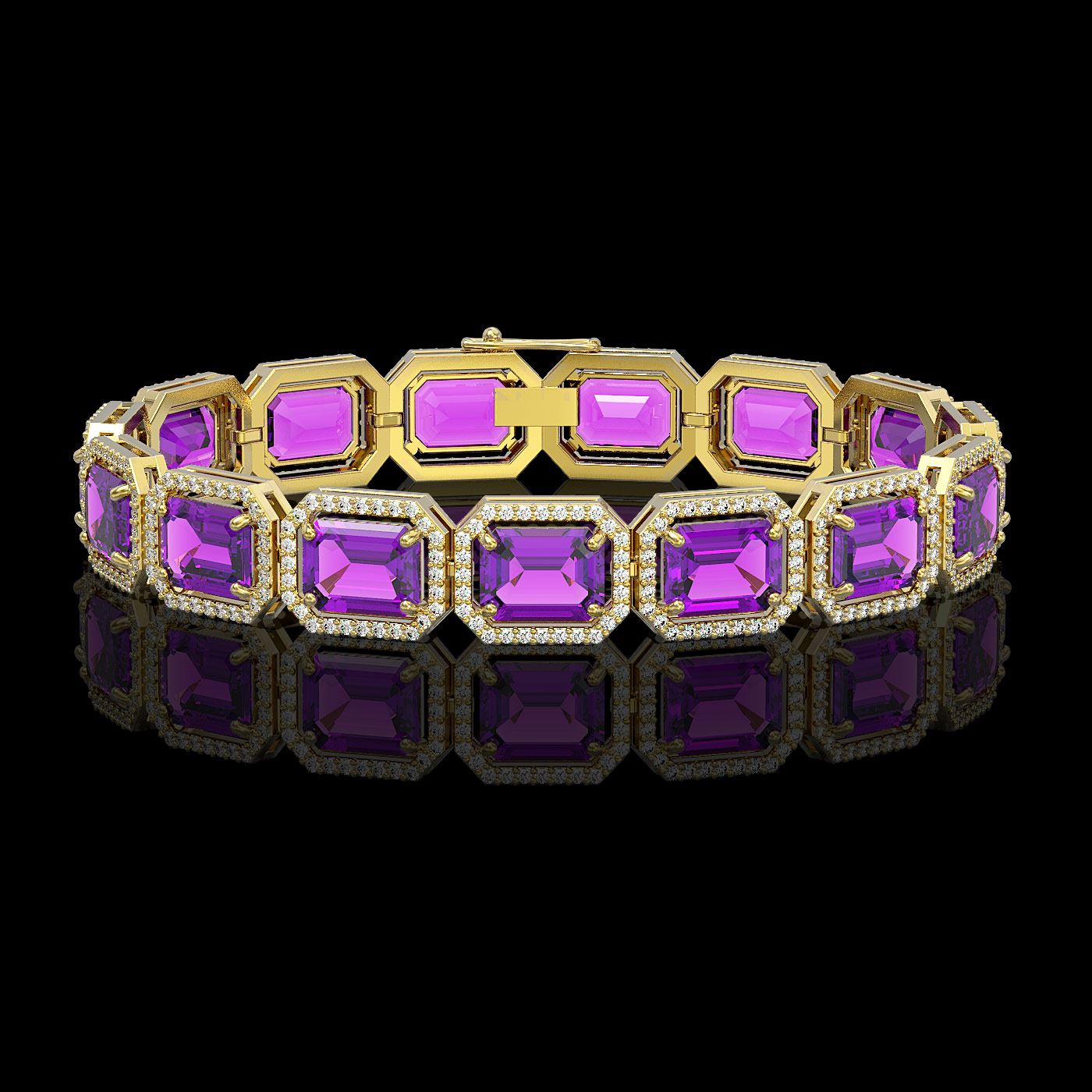 REF-345F5M - SKU: 41563 ---- 34.86 ctw Amethyst & Diamond Micro Pave Halo Bracelet 10k Yellow Gold