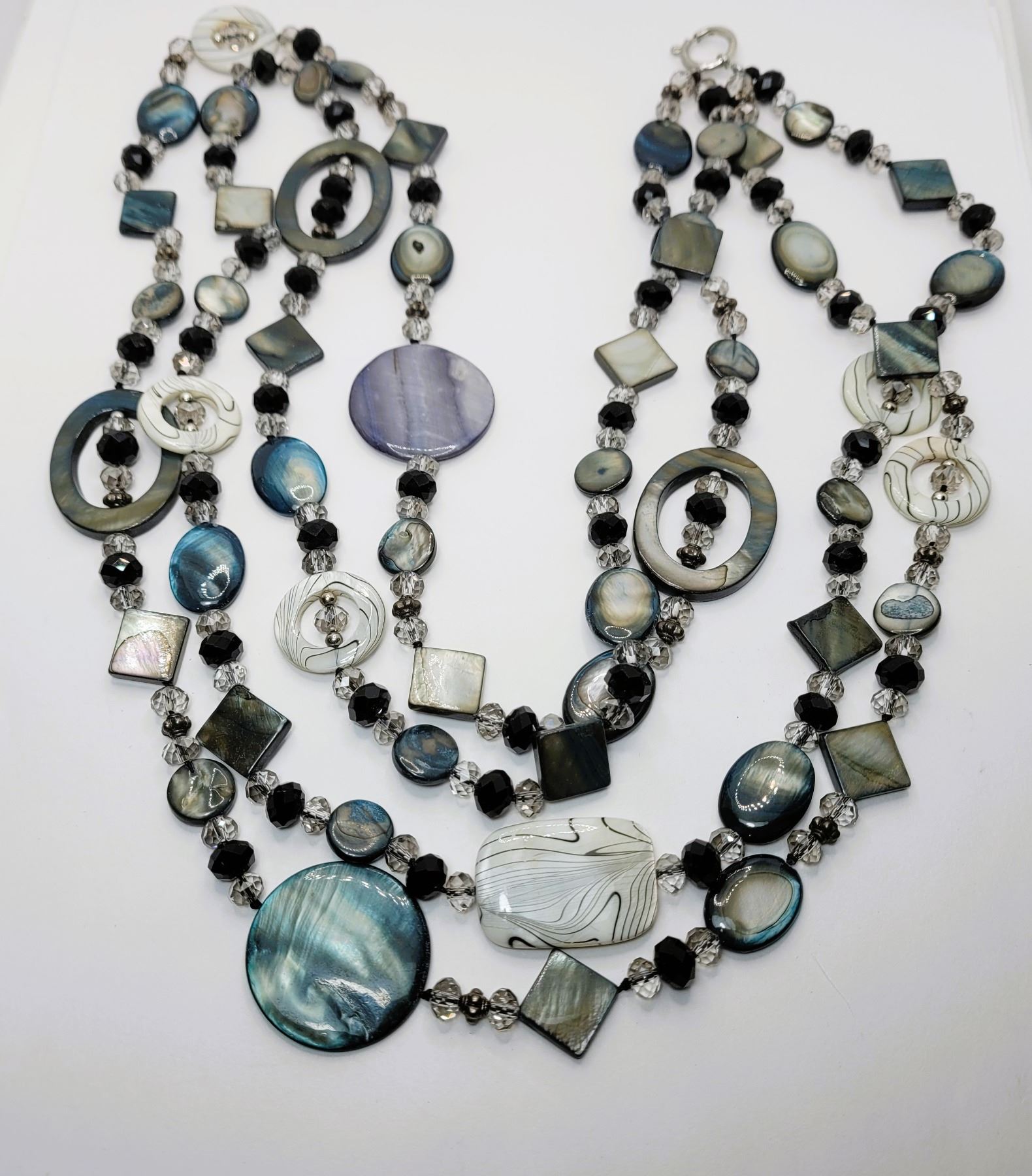 AND CRYSTALS IN SHADES OF CLEAR, WHITE, GREY BLUE AND BLACK. JEWELRY