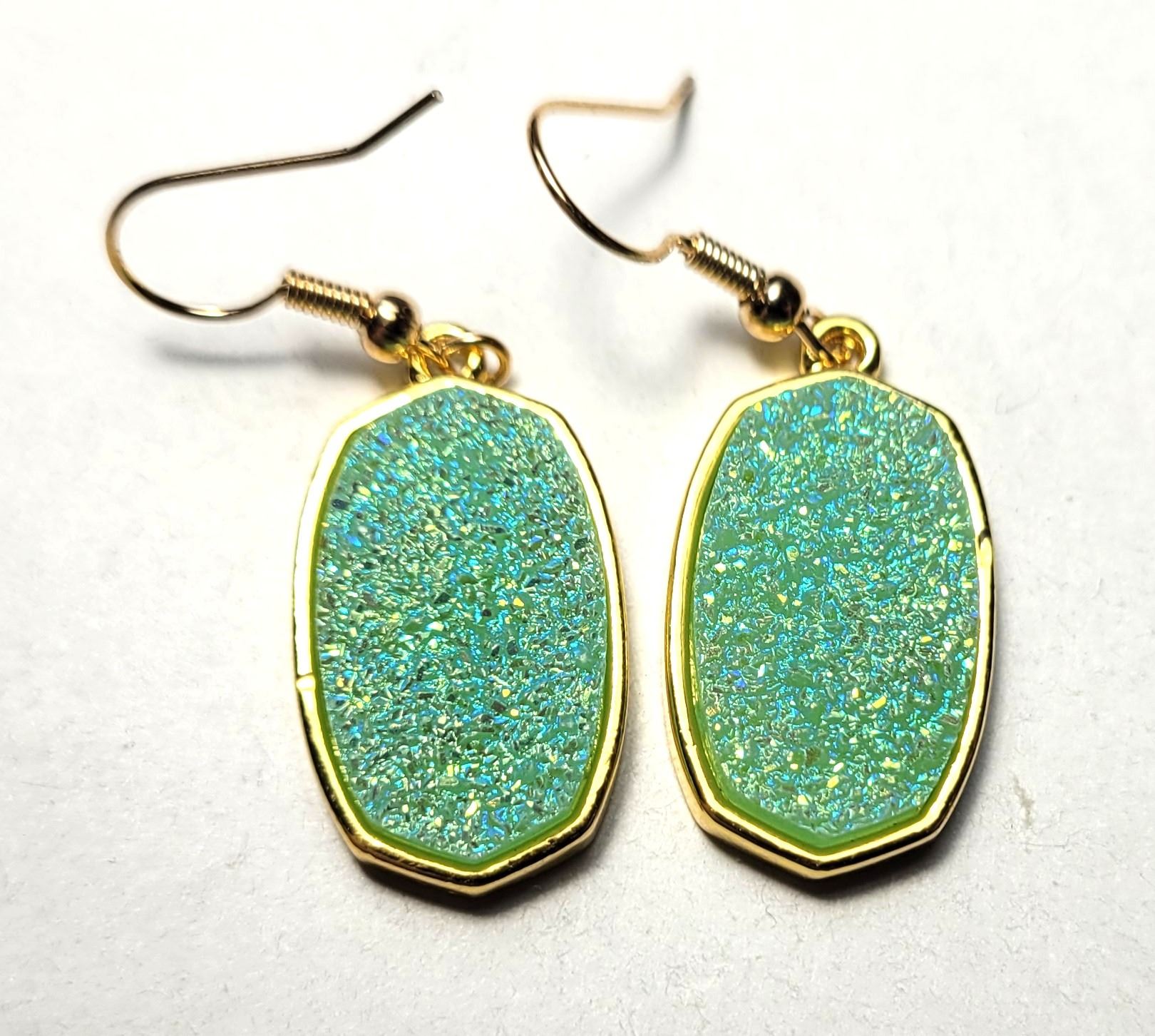 34) GOLD TONE WITH PALE GREEN PEBBLE
