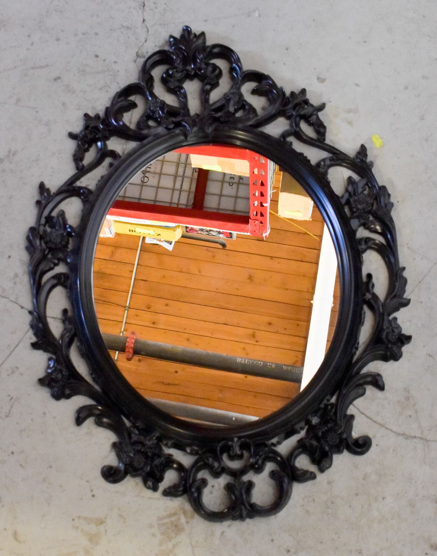 34 INCH BLACK ORNATE FRAMED MIRROR