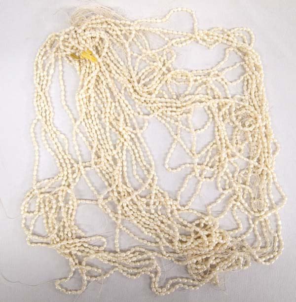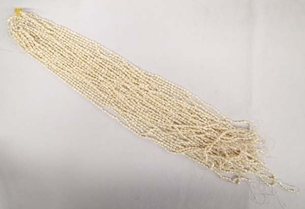 34 Stands of Seed Pearls for jewelry making. Large lot of fresh water pearls. These strands meaasure 26'' in length.