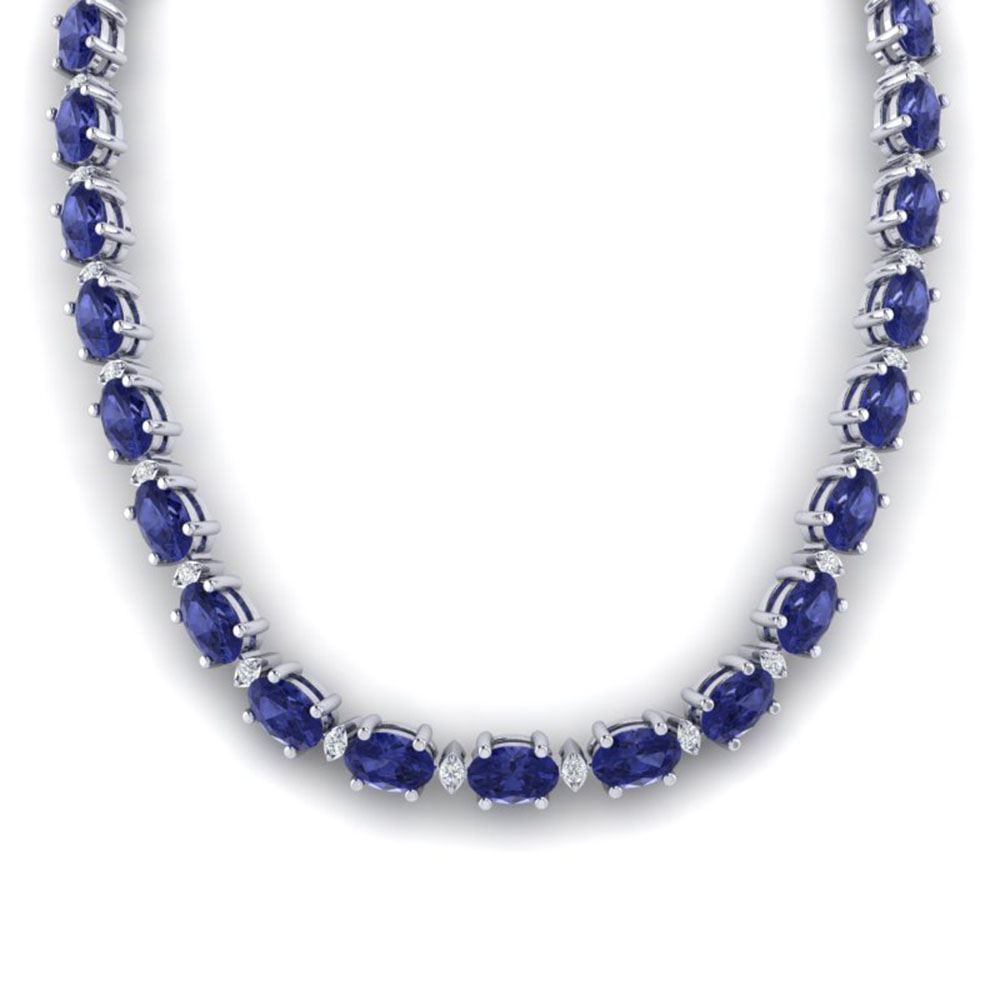 REF-281M8G - SKU: 21606 ---- 34 ctw Tanzanite & VS/SI Diamond Eternity Necklace 10k White Gold
