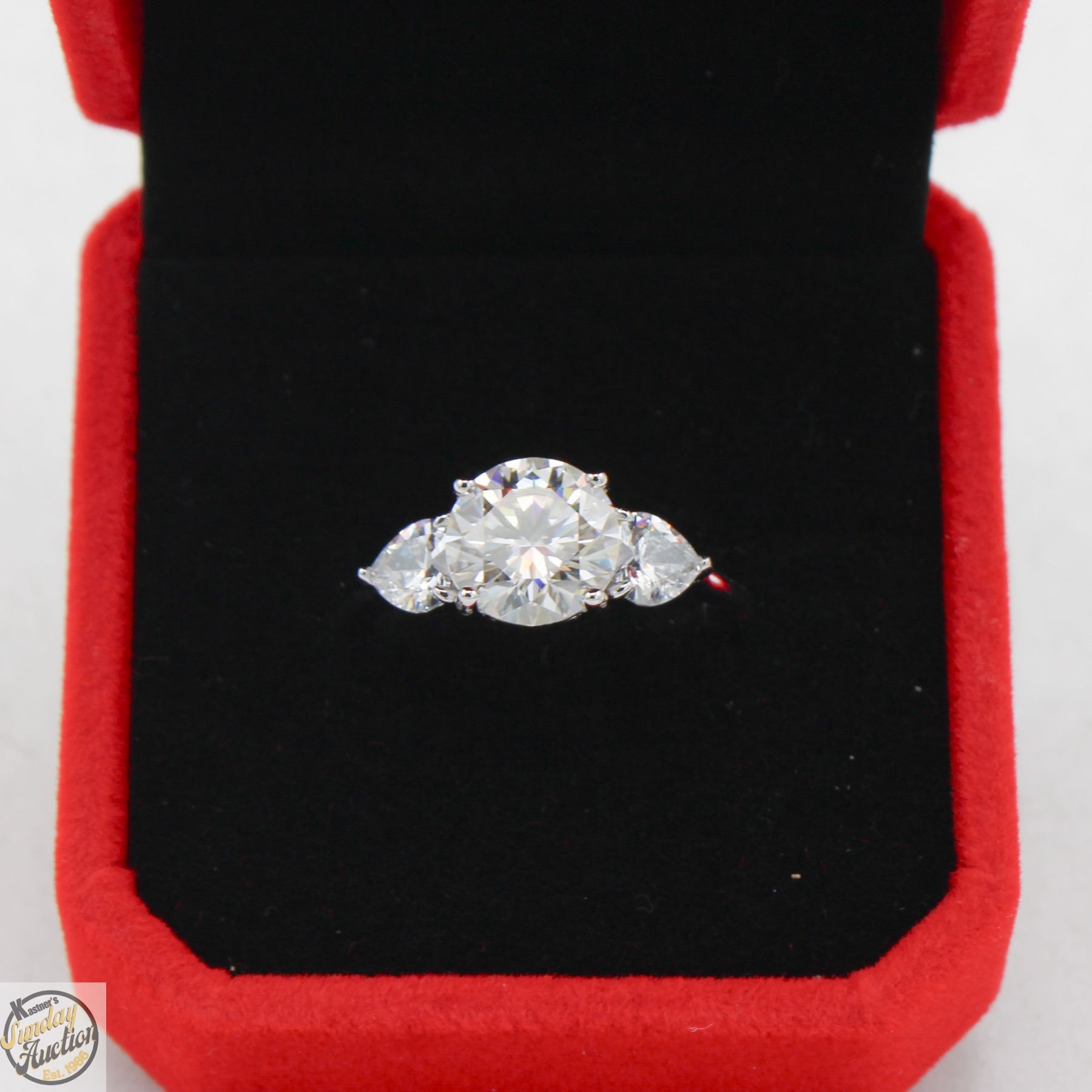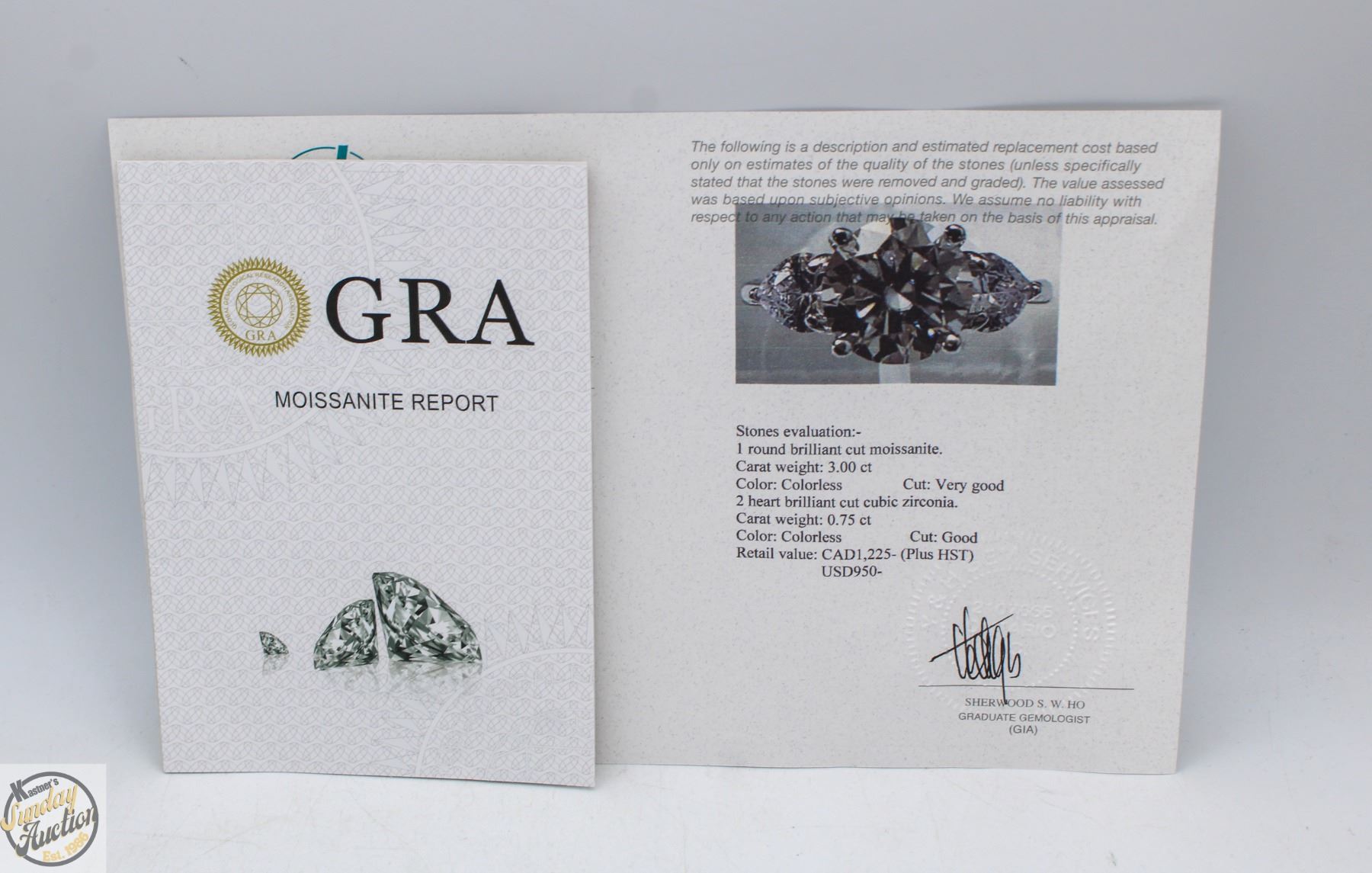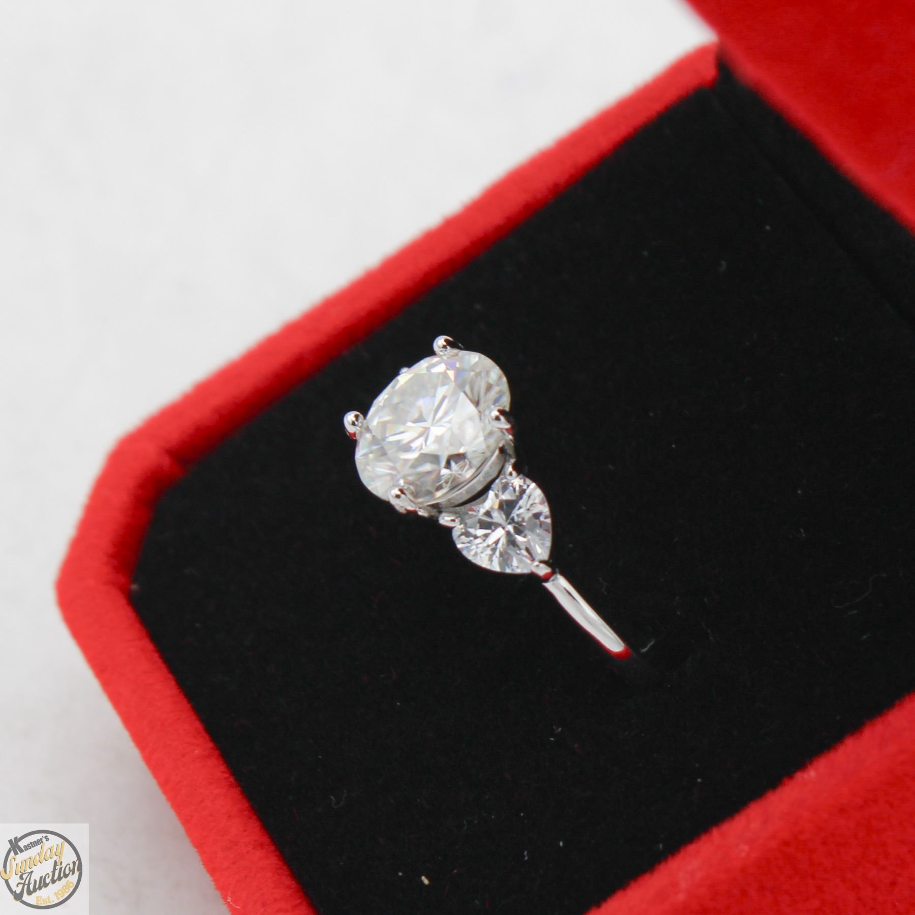 MOISSANITE STONE VVS D COLOR WITH A HEART BRILLIANT CUT CUBIC ZIRCONIA SET ON EITHER SIDE SET IN 925 SILVER RING SIZE 9 RETAIL VALUE $1,225.00 **ALL ITEMS MUST BE REMOVED BY 5PM SATURDAY, DECEMBER 6TH 2025. ALL REMAINING ITEMS WILL BE SUBJECT TO A $6.00 PER DAY STORAGE CHARGE. ANY ITEMS REMAINING AFTER MONDAY, DECEMBER 22ND 2025 WILL BE CONSIDERED FORFEITED. NO REFUNDS WILL BE ISSUED FOR FORFEITED ITEMS. TO SCHEDULE A PICK UP APPOINTMENT CLICK HERE