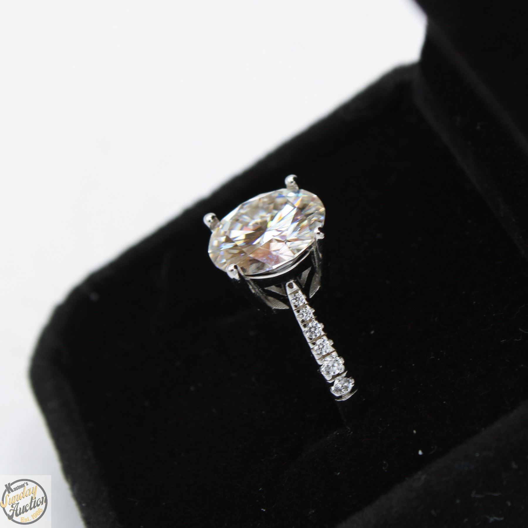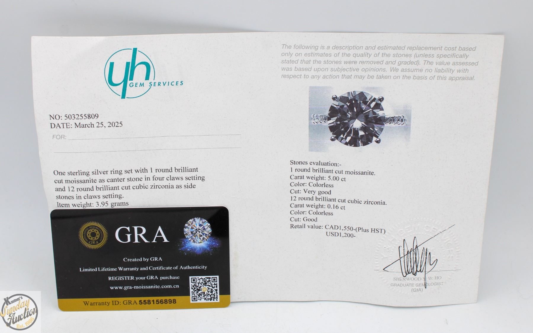 MOISSANITE STONE VVS D COLOR SET IN CENTER WITH 12 ROUND BRILLIANT CUT CUBIC ZIRCONIA AND SET IN SHANK SET IN 925 SILVER RING SIZE 6.75 RETAIL VALUE $1,550.00 **ALL ITEMS MUST BE REMOVED BY 5PM SATURDAY, NOVEMBER 22ND 2025. ALL REMAINING ITEMS WILL BE SUBJECT TO A $6.00 PER DAY STORAGE CHARGE. ANY ITEMS REMAINING AFTER MONDAY, DECEMBER 8TH 2025 WILL BE CONSIDERED FORFEITED. NO REFUNDS WILL BE ISSUED FOR FORFEITED ITEMS. TO SCHEDULE A PICK UP APPOINTMENT CLICK HERE