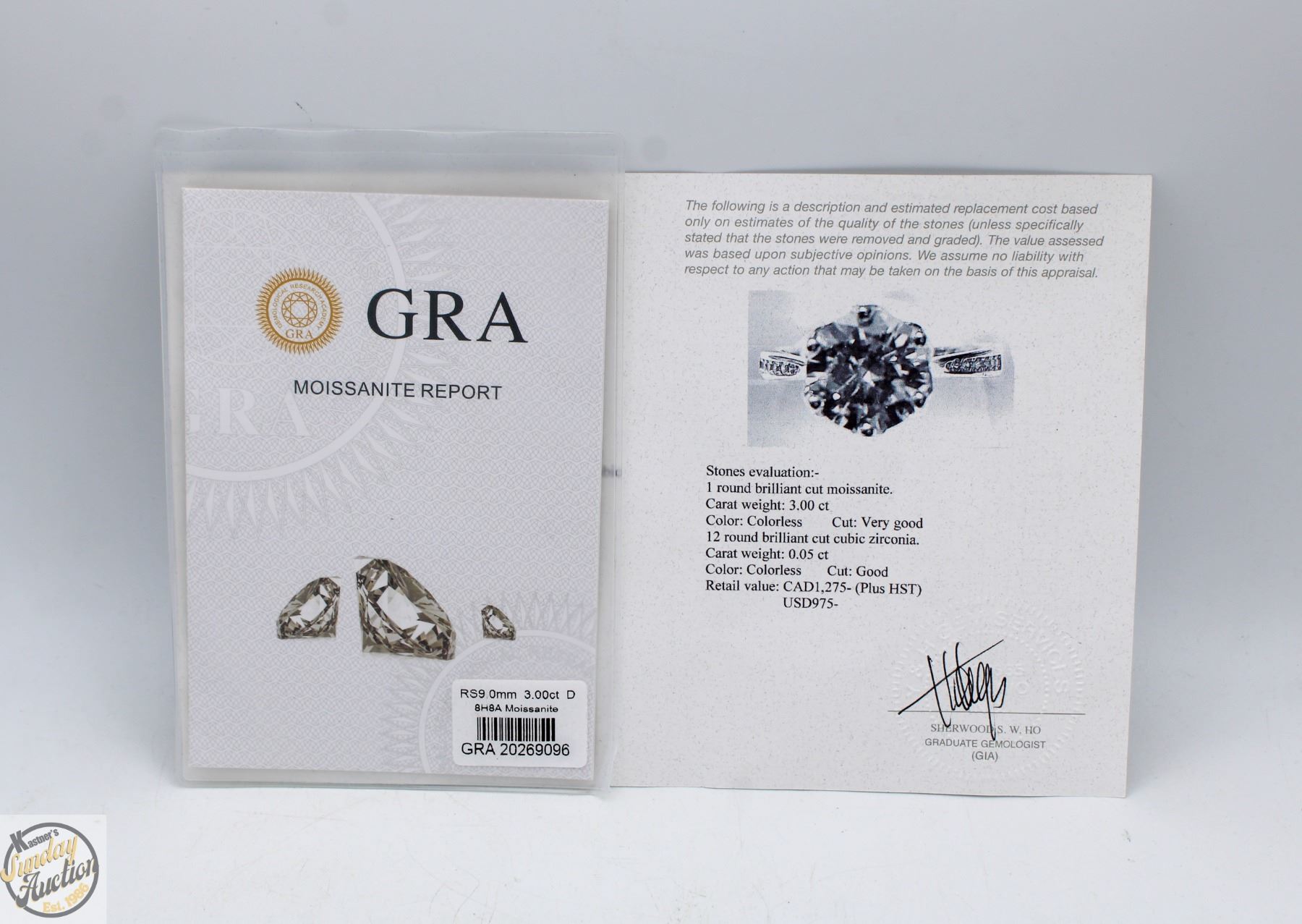 MOISSANITE STONE VVS D COLOR WITH 12 ROUND BRILLIANT CUT CUBIC ZIRCONIA SET IN SHANKS SET IN 925 SILVER RING SIZE 6.25 RETAIL VALUE $1,275.00 **ALL ITEMS MUST BE REMOVED BY 5PM SATURDAY, DECEMBER 6TH 2025. ALL REMAINING ITEMS WILL BE SUBJECT TO A $6.00 PER DAY STORAGE CHARGE. ANY ITEMS REMAINING AFTER MONDAY, DECEMBER 22ND 2025 WILL BE CONSIDERED FORFEITED. NO REFUNDS WILL BE ISSUED FOR FORFEITED ITEMS. TO SCHEDULE A PICK UP APPOINTMENT CLICK HERE