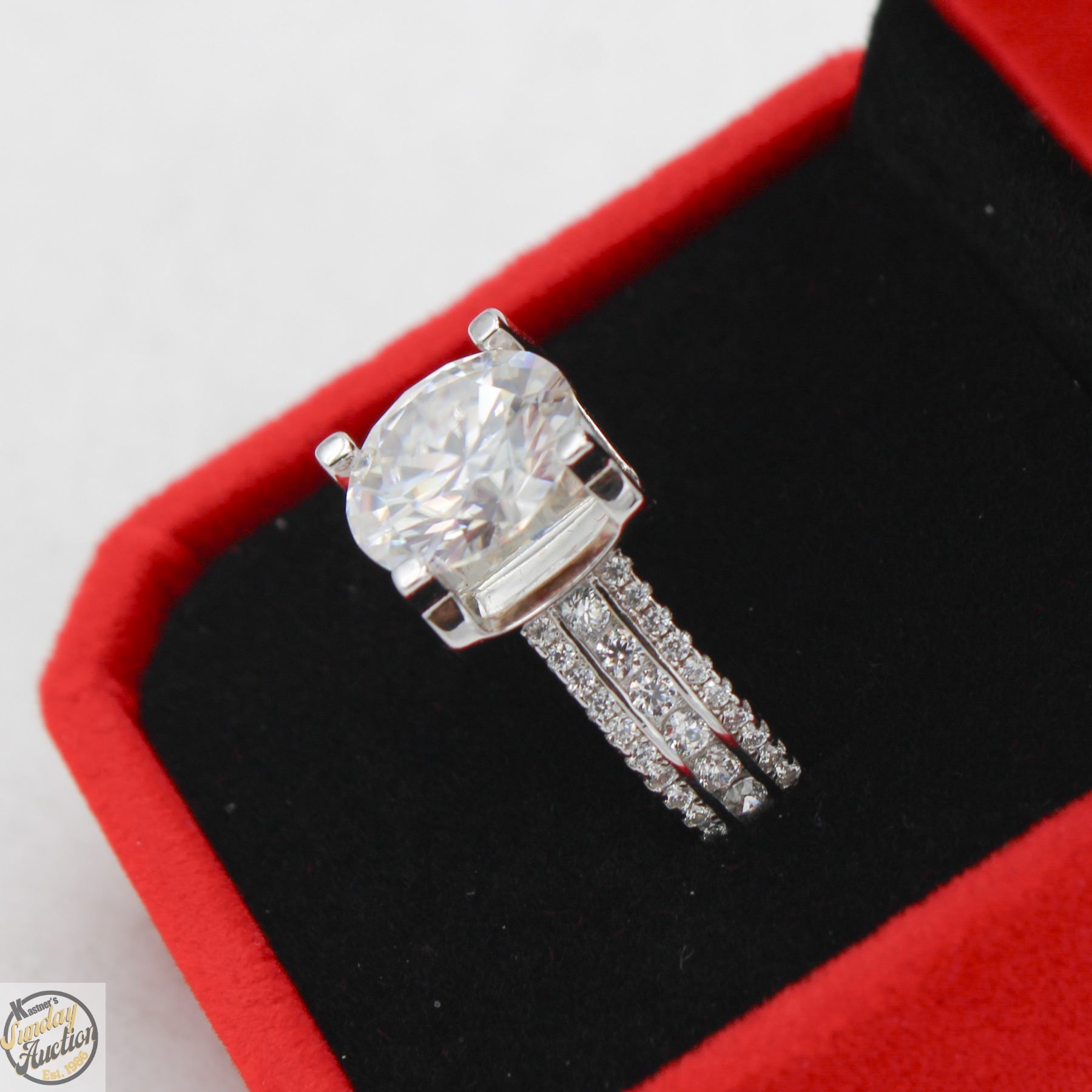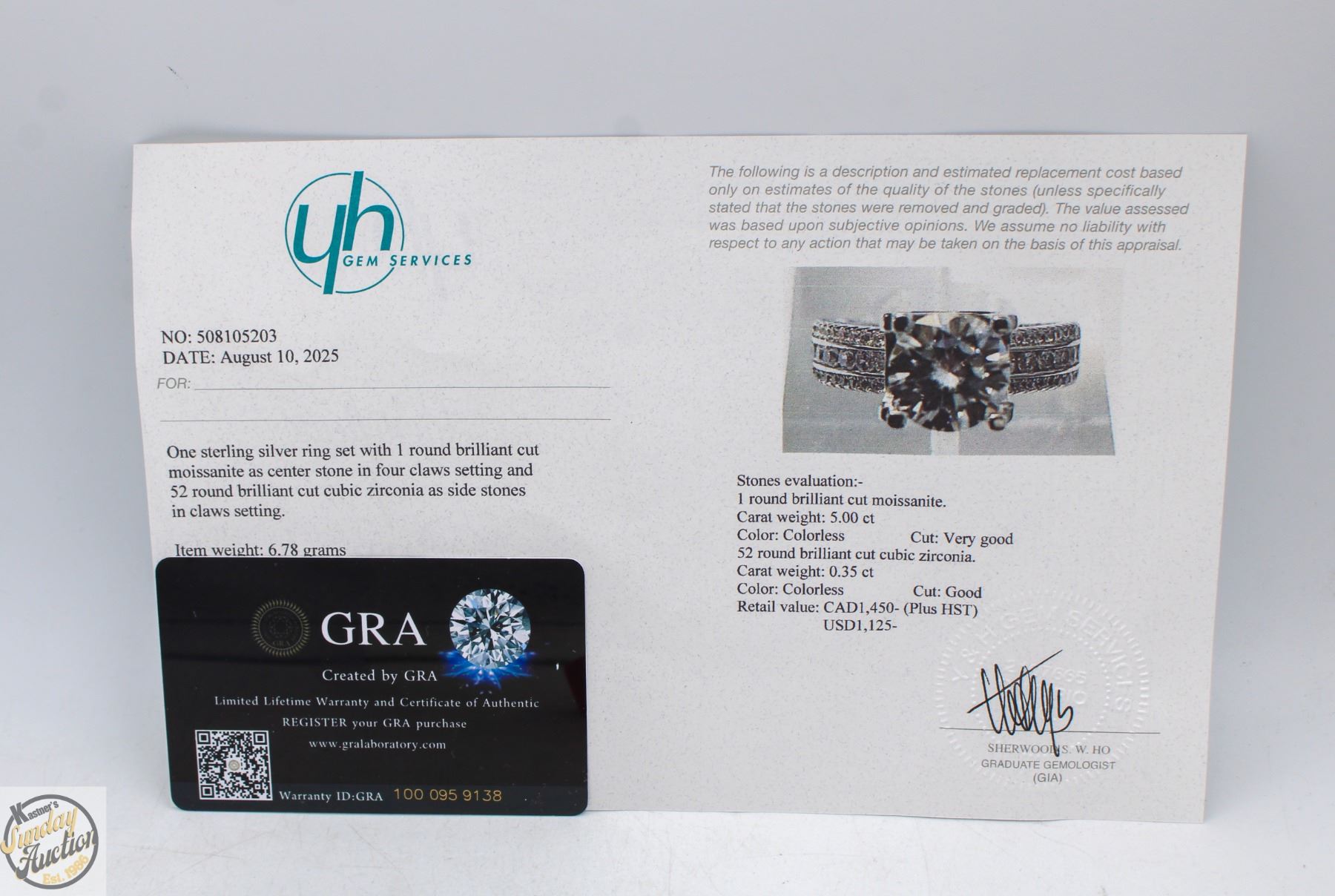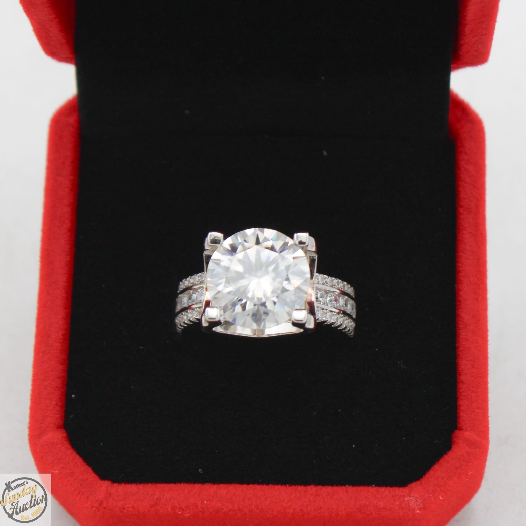 MOISSANITE STONE VVS D COLOR WITH 52 ROUND BRILLIANT CUT CUBIC ZIRCONIA WITH LARGER SIZE SET IN CENTER ROW WITH SMALLER SIZE SET ON EITHER SIDE SET IN 925 SILVER RING SIZE 6 RETAIL VALUE $1,450.00 **ALL ITEMS MUST BE REMOVED BY 5PM SATURDAY, DECEMBER 6TH 2025. ALL REMAINING ITEMS WILL BE SUBJECT TO A $6.00 PER DAY STORAGE CHARGE. ANY ITEMS REMAINING AFTER MONDAY, DECEMBER 22ND 2025 WILL BE CONSIDERED FORFEITED. NO REFUNDS WILL BE ISSUED FOR FORFEITED ITEMS. TO SCHEDULE A PICK UP APPOINTMENT CLICK HERE