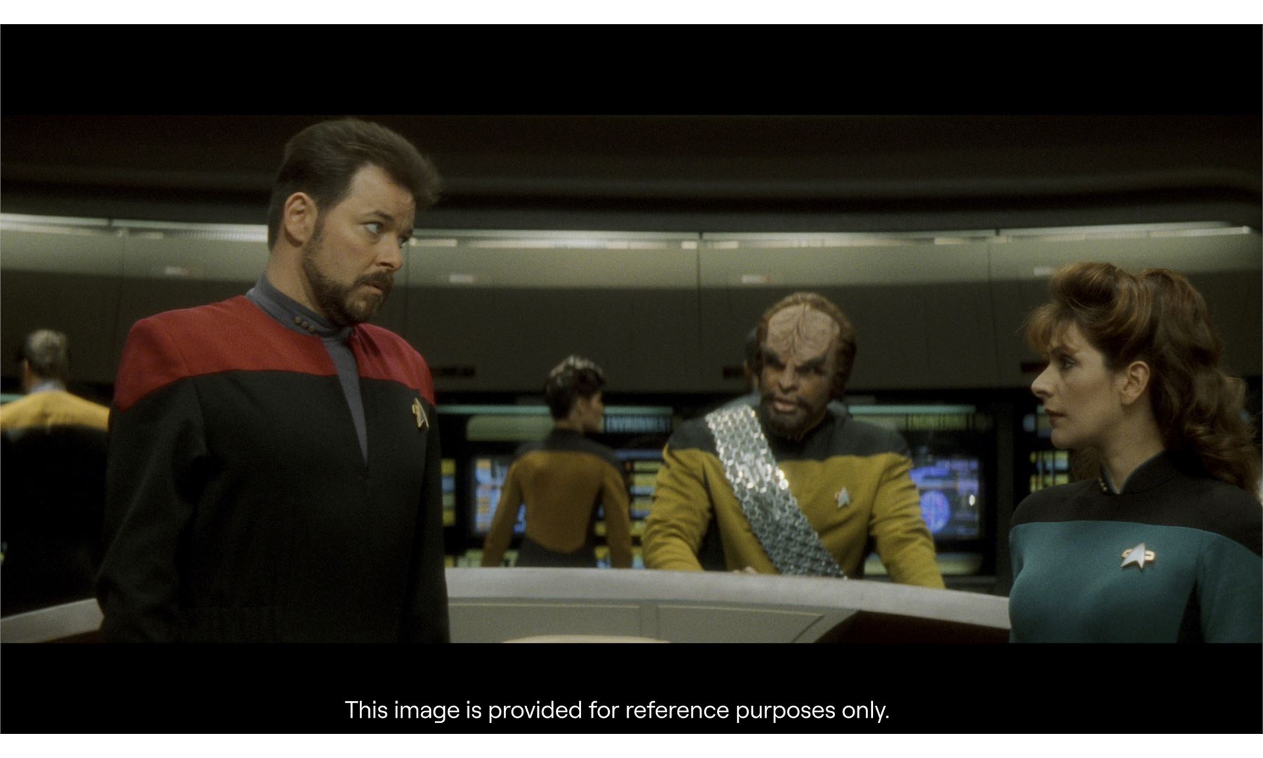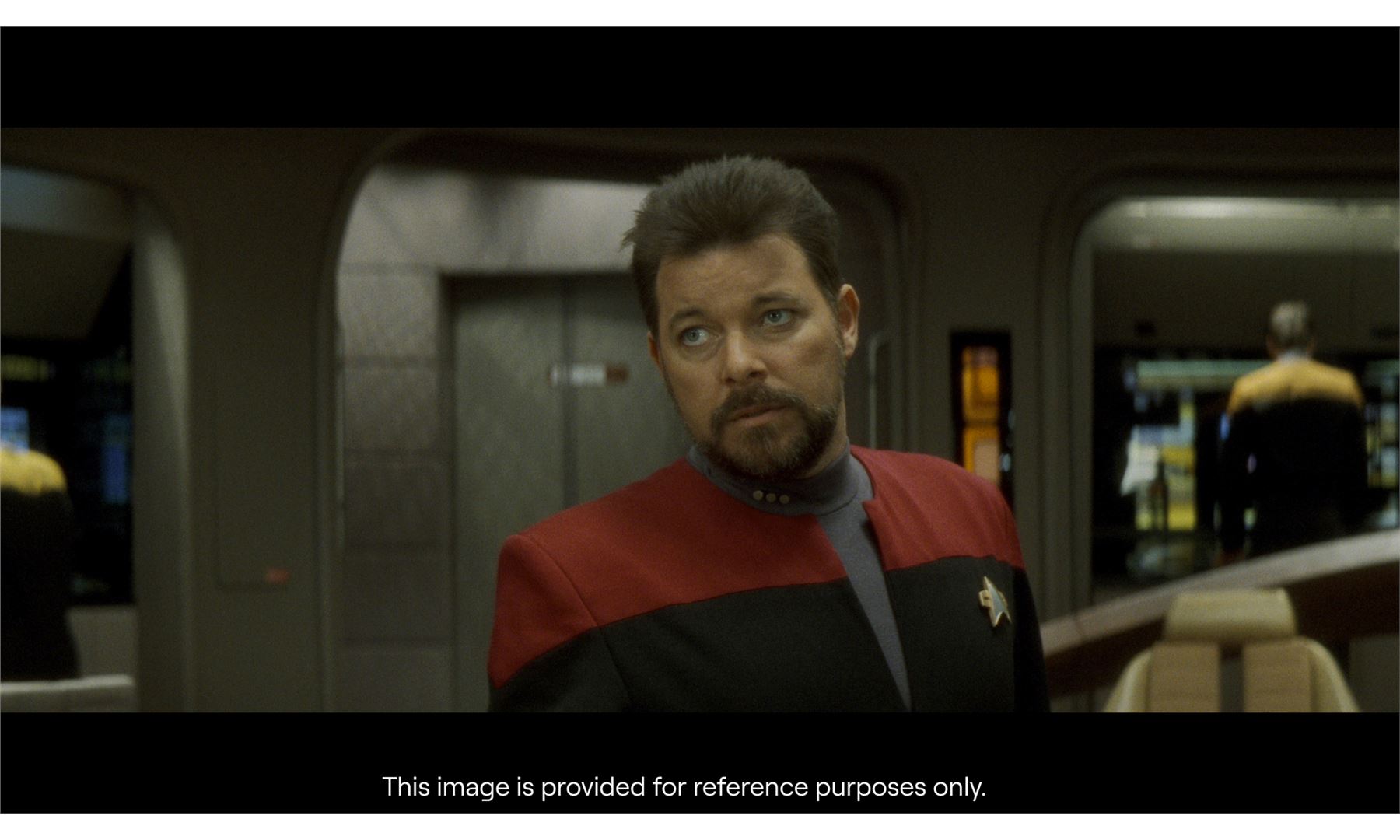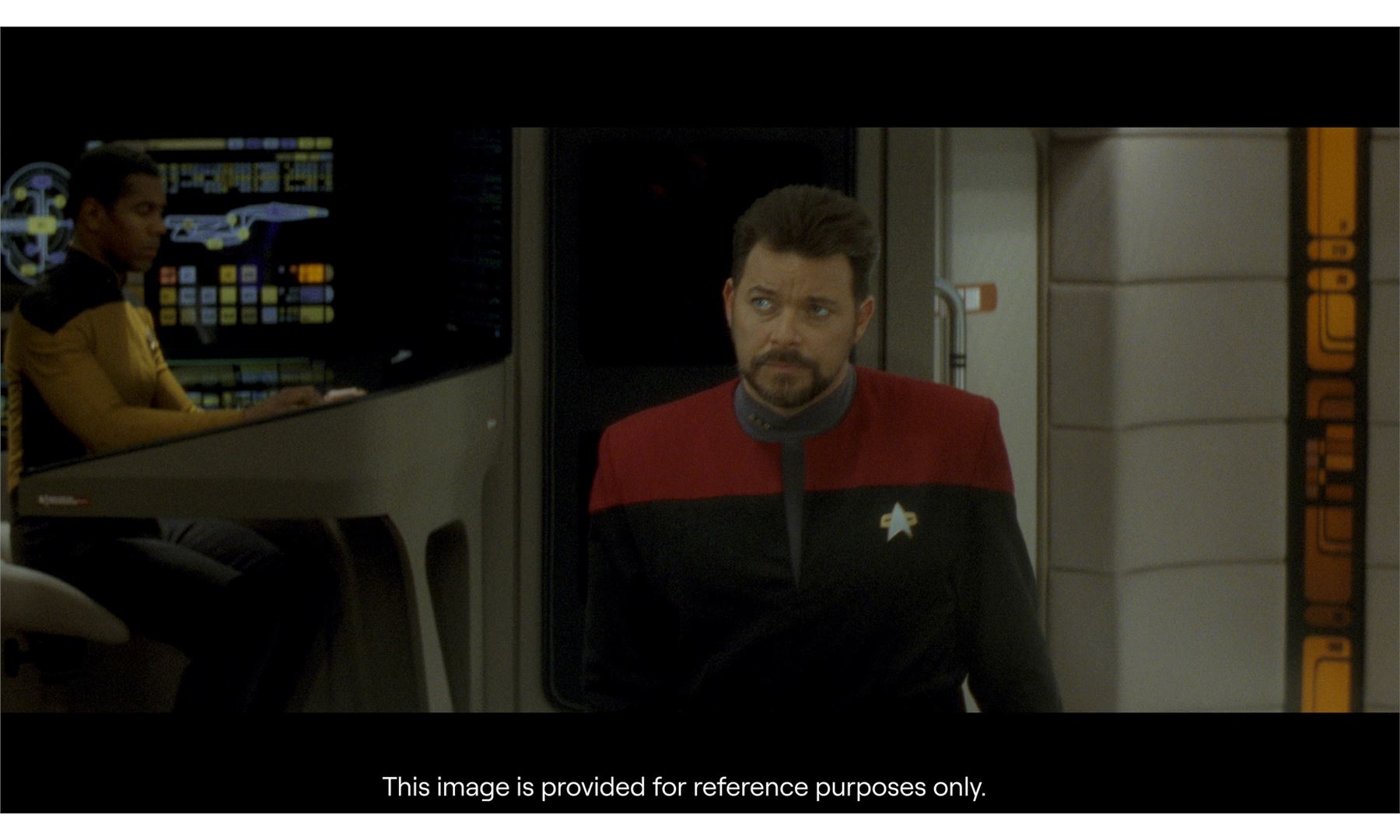 STAR TREK: GENERATIONS (1994) - Commander Riker's (Jonathan Frakes) Starfleet Uniform Costume - Commander Riker's (Jonathan Frakes) Starfleet uniform costume from David Carson's Star Trek: Generations. Riker wore his costume throughout the film as he took charge of the Enterprise in Captain Picard's (Patrick Stewart) absence.