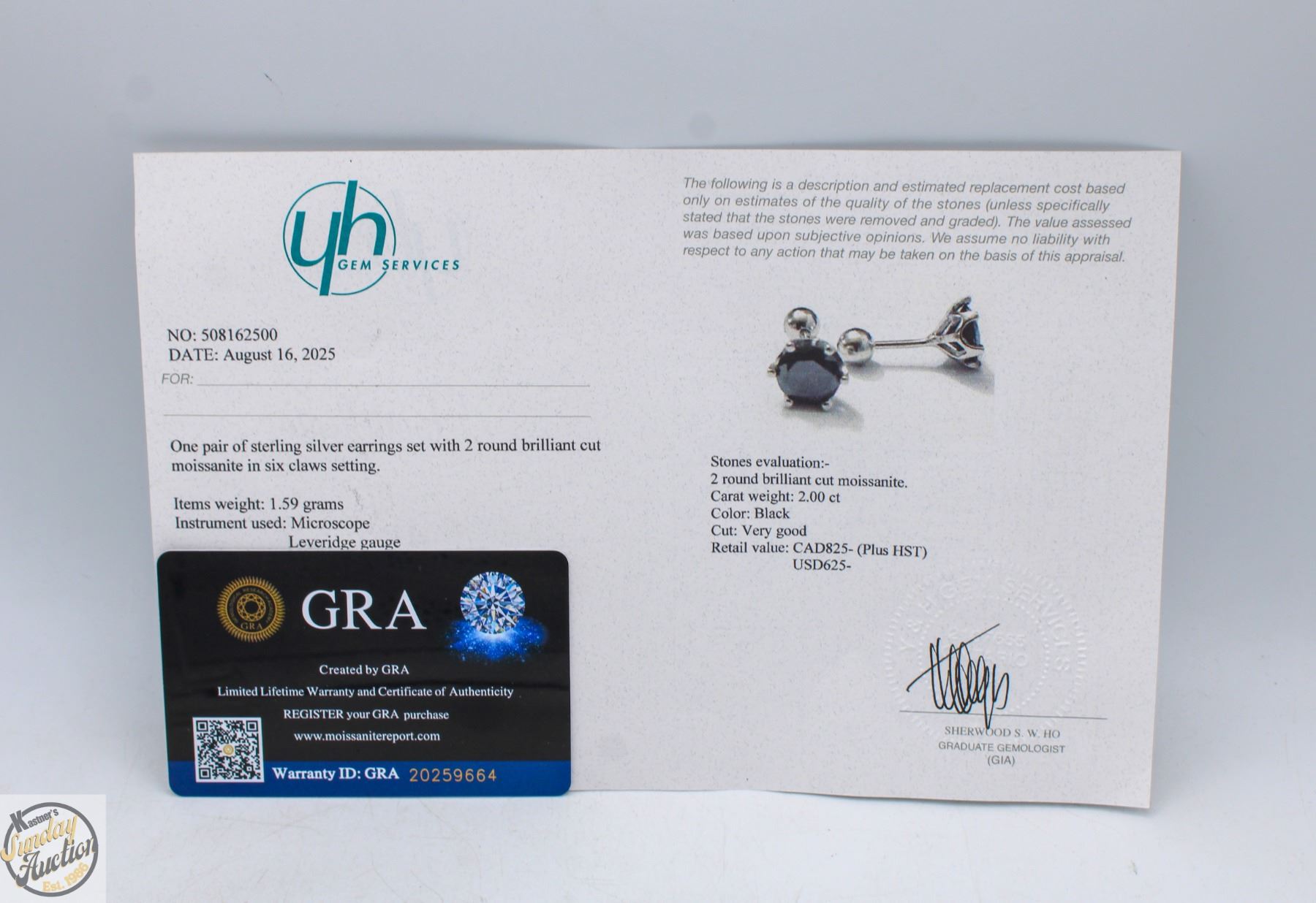 MOISSANITE STONES VVS BLACK COLOR WITH 30 ROUND BRILLIANT CUT CUBIC ZIRCONIA SET IN ROUND HALOS DANGLING FROM ROUND CZ ALL SET IN 925 SILVER EARRINGS RETAIL VALUE $825.00 **ALL ITEMS MUST BE REMOVED BY 5PM SATURDAY, DECEMBER 6TH 2025. ALL REMAINING ITEMS WILL BE SUBJECT TO A $6.00 PER DAY STORAGE CHARGE. ANY ITEMS REMAINING AFTER MONDAY, DECEMBER 22ND 2025 WILL BE CONSIDERED FORFEITED. NO REFUNDS WILL BE ISSUED FOR FORFEITED ITEMS. TO SCHEDULE A PICK UP APPOINTMENT CLICK HERE