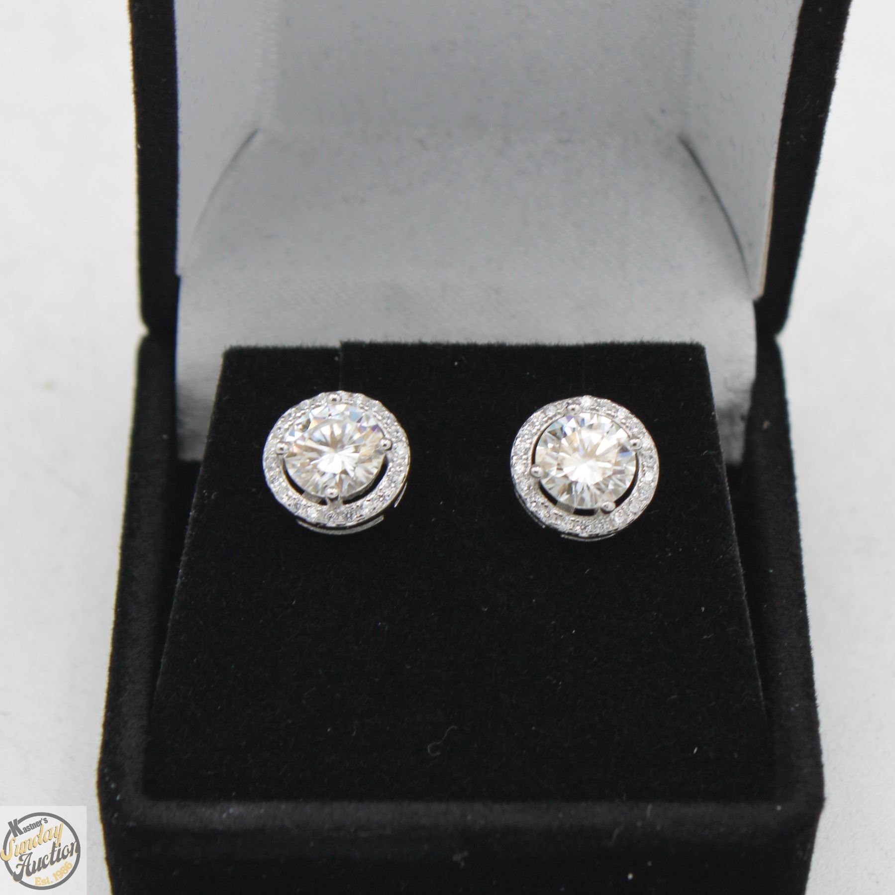 MOISSANITE STONE VVS D COLOR SET WITH 40 ROUND BRILLIANT CUT CUBIC ZIRCONIA SET IN ROUND HALO SET IN 925 SILVER EARRING RETAIL VALUE $950.00 **ALL ITEMS MUST BE REMOVED BY 5PM SATURDAY, DECEMBER 6TH 2025. ALL REMAINING ITEMS WILL BE SUBJECT TO A $6.00 PER DAY STORAGE CHARGE. ANY ITEMS REMAINING AFTER MONDAY, DECEMBER 22ND 2025 WILL BE CONSIDERED FORFEITED. NO REFUNDS WILL BE ISSUED FOR FORFEITED ITEMS. TO SCHEDULE A PICK UP APPOINTMENT CLICK HERE