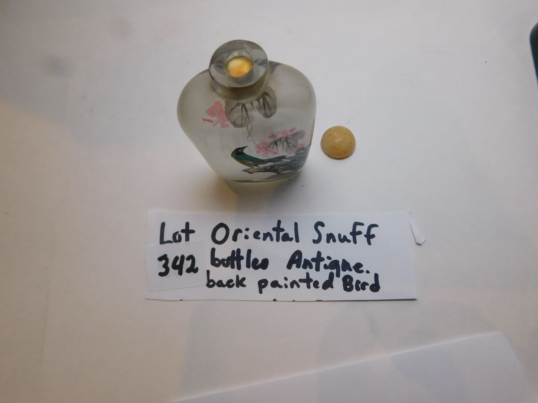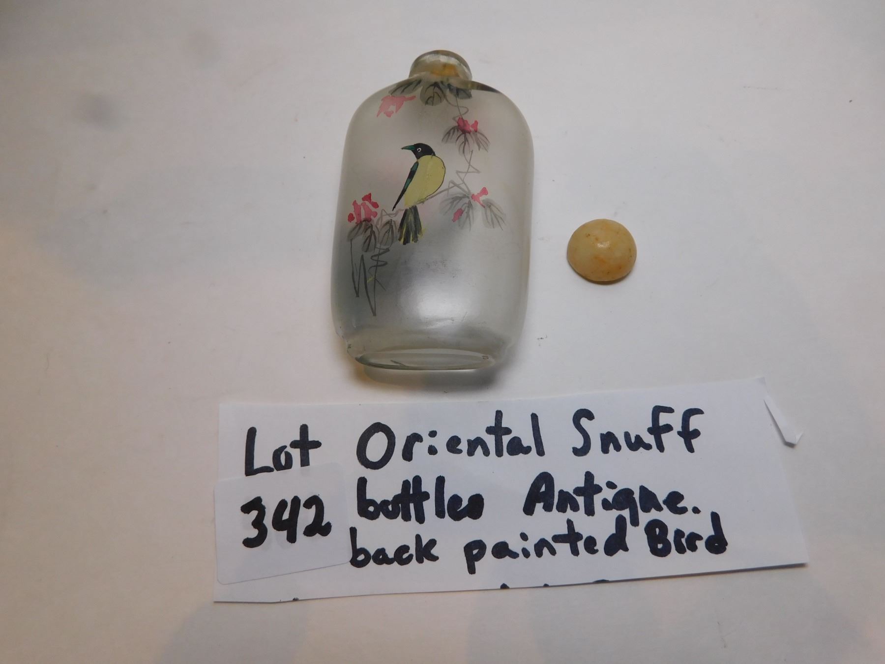 342. BACK PAINTED BIRD ANTIQUE ORIENTAL SNUFF BOTTLE
