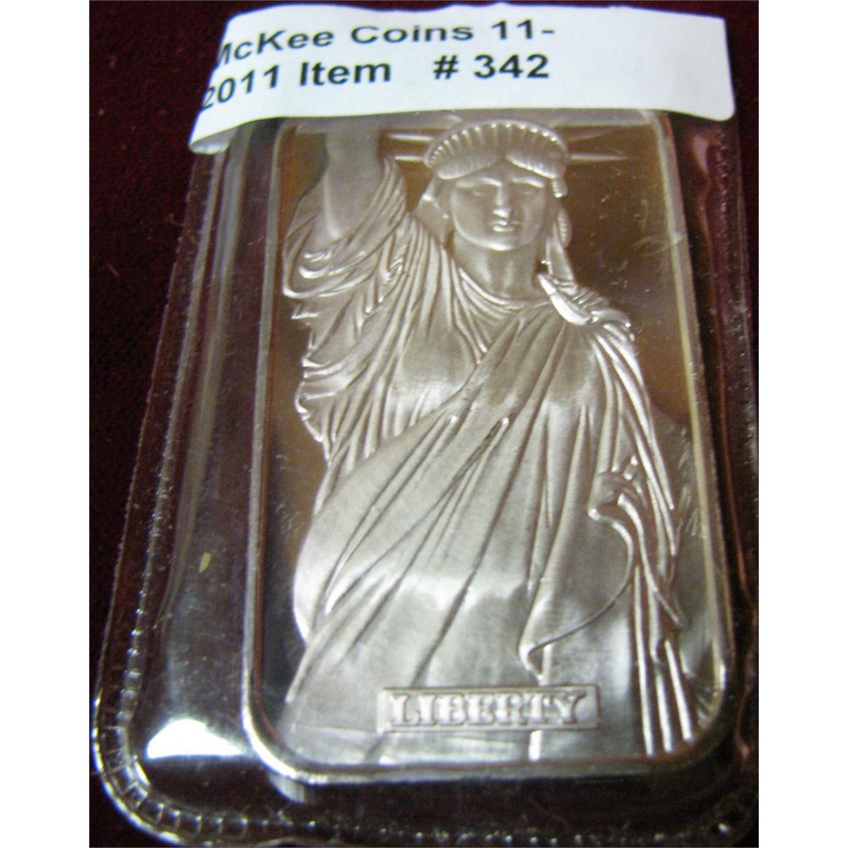 342. Statue of Liberty One Troy ounce Silver Ingot. .999 Fine. Serial number 44192.