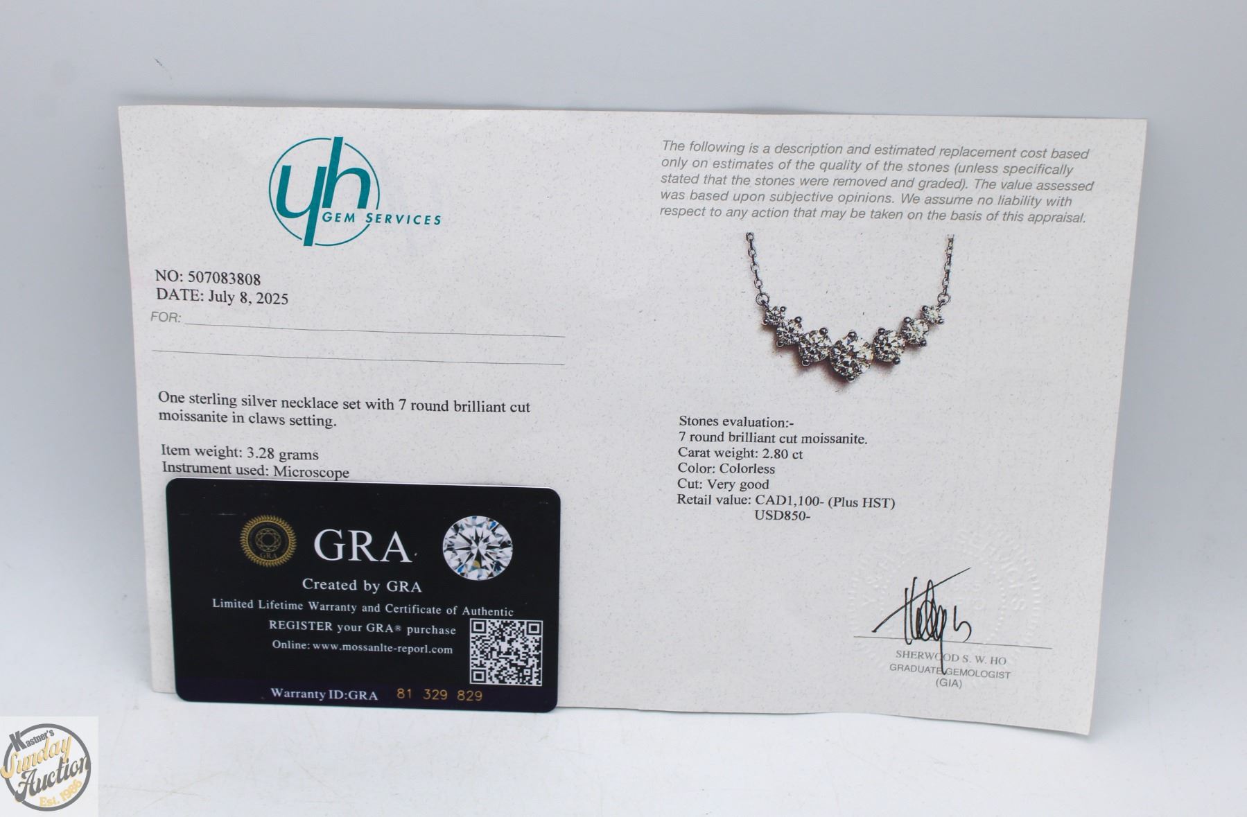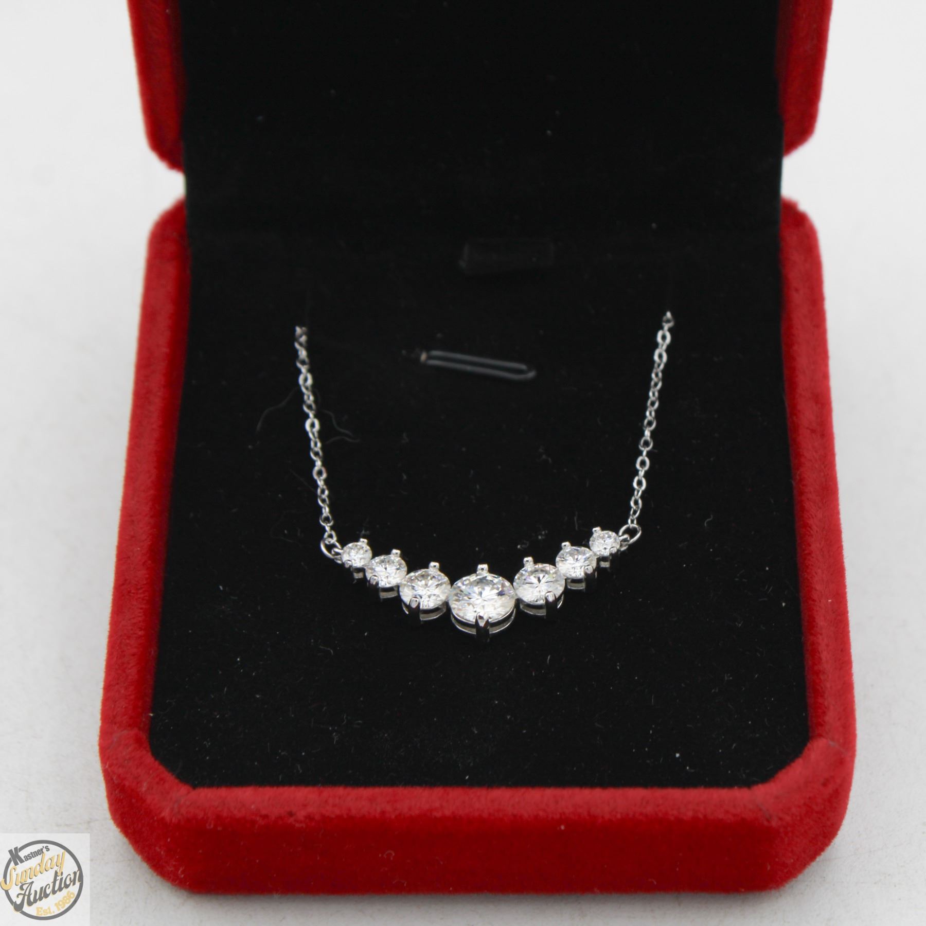MOISSANITE STONES VVS D COLOR SET WITH LARGER STONE IN CENTER AND 3 GRADUATING DOWN IN SIZE ON EITHER SIDE SET IN 925 SILVER PENDANT RETAIL VALUE $1,100.00 **ALL ITEMS MUST BE REMOVED BY 5PM SATURDAY, DECEMBER 6TH 2025. ALL REMAINING ITEMS WILL BE SUBJECT TO A $6.00 PER DAY STORAGE CHARGE. ANY ITEMS REMAINING AFTER MONDAY, DECEMBER 22ND 2025 WILL BE CONSIDERED FORFEITED. NO REFUNDS WILL BE ISSUED FOR FORFEITED ITEMS. TO SCHEDULE A PICK UP APPOINTMENT CLICK HERE