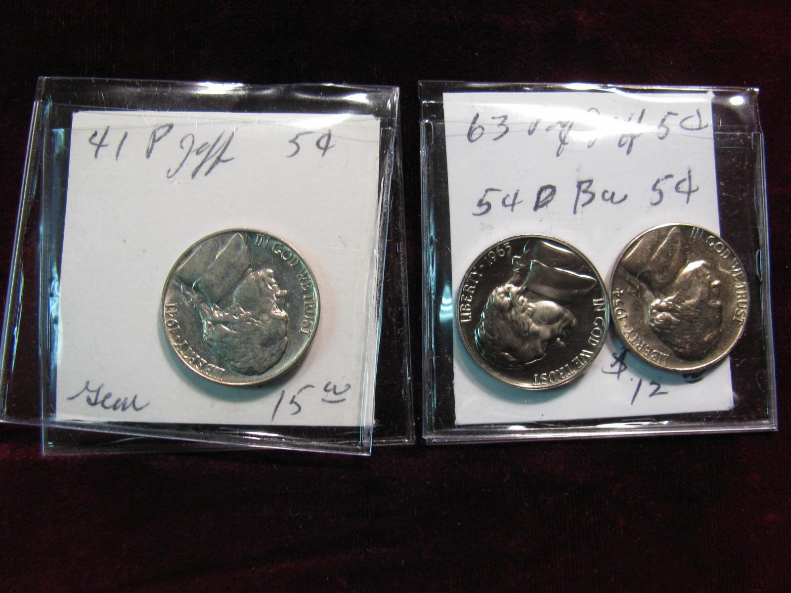 3425. 1941P, 54D BU & 63P Proof Jefferson Nickels.