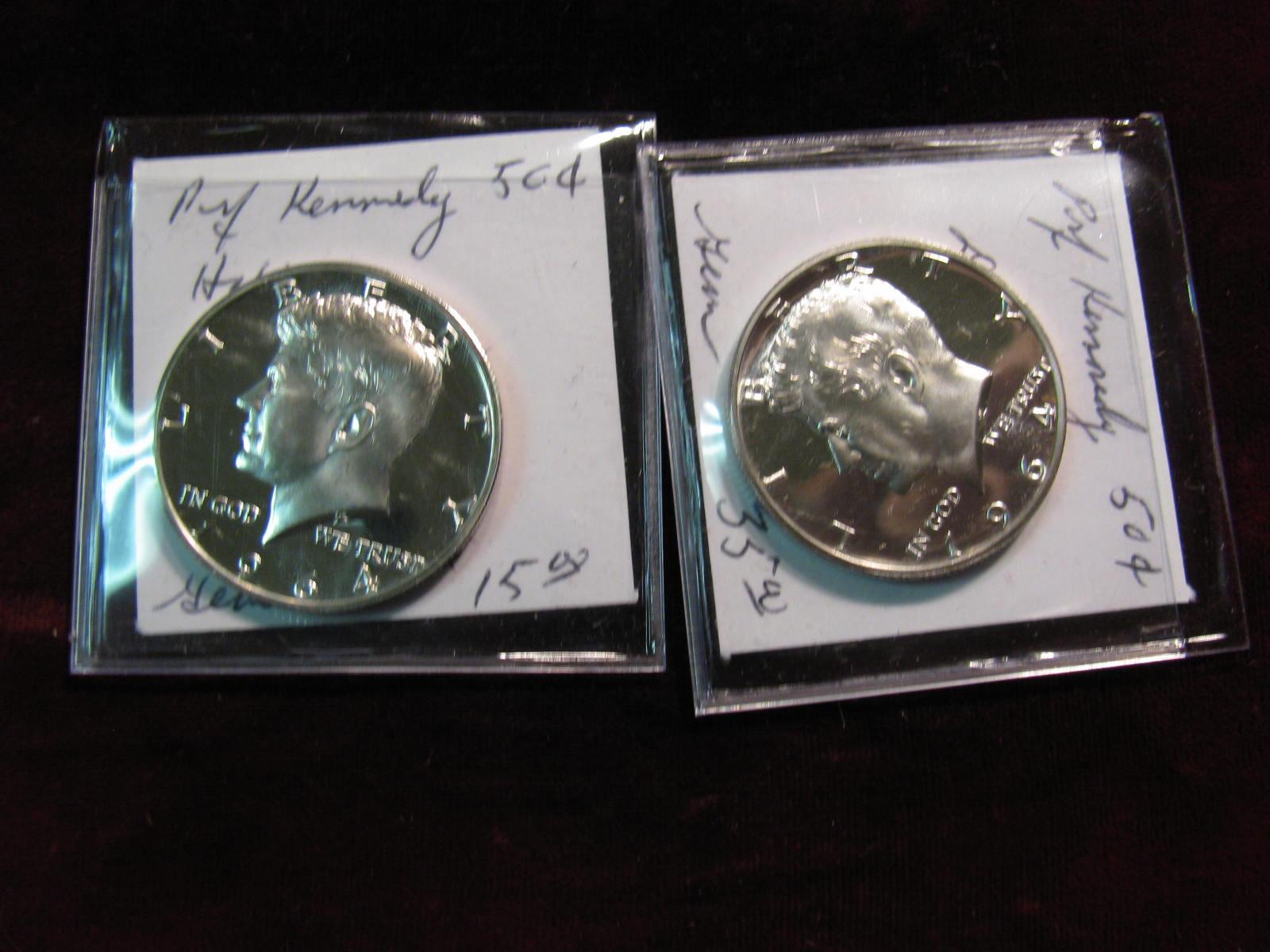 3433. (2) 1964 Frosted Proof Kennedy Halves.