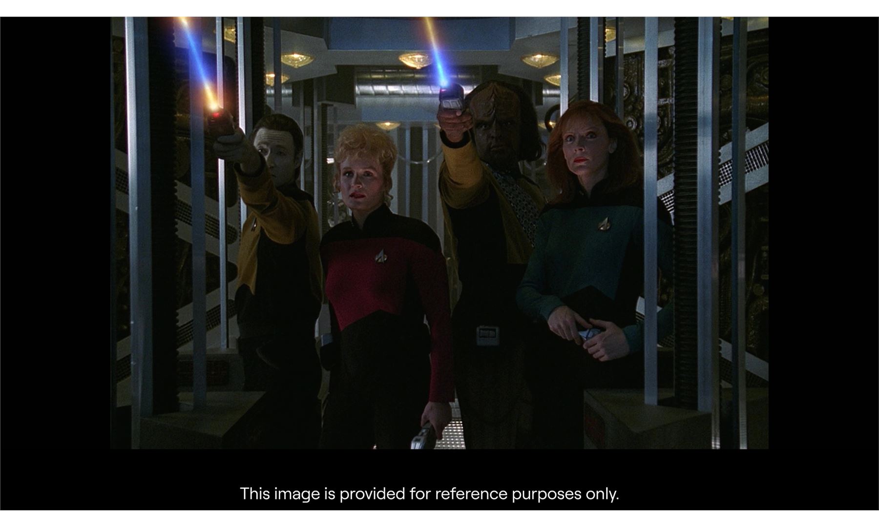STAR TREK: THE NEXT GENERATION (T.V. SERIES, 1987-1994)/STAR TREK: GENERATIONS (1994) - Light-Up Starfleet Type-2 "Cobra Head" Phaser - A light-up Starfleet Type-2 "Cobra Head" phaser from the television series Star Trek: The Next Generation and David Carson's Star Trek: Generations. Introduced during Season 3 of The Next Generation and used in Star Trek Generations, the 2366 phaser variant was used by members of Starfleet and featured new various settings, such as 16 different levels of power and the ability to be set for narrow or wide beams.