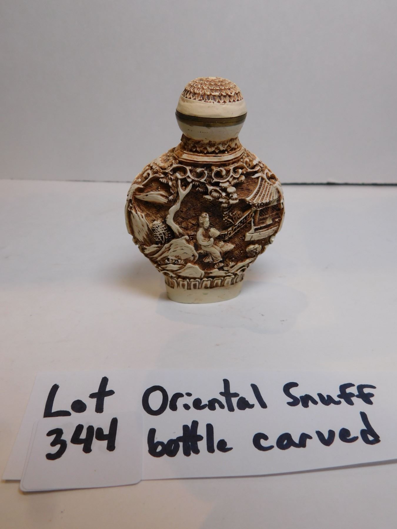 344. ORIENTAL CARVED ANTIQUE SNUFF BOTTLE