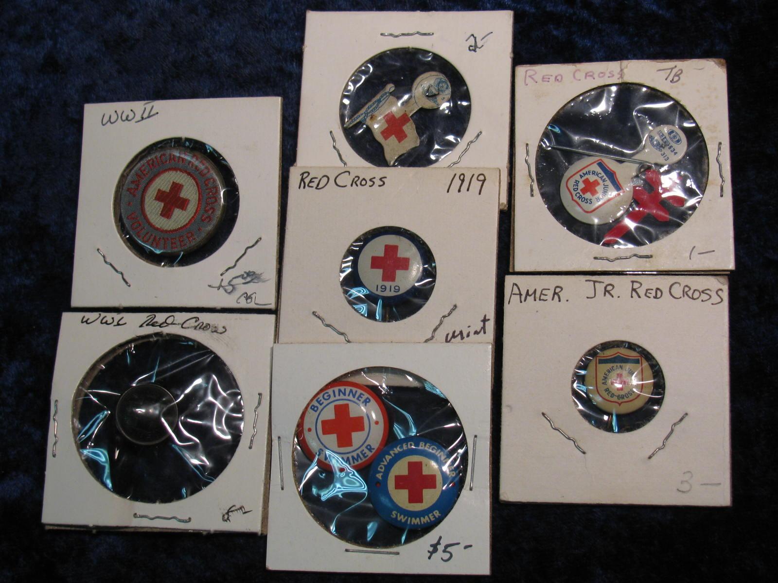 345. 1548. (8) Assorted World War I & II Red Cross Pin backs or buttons.