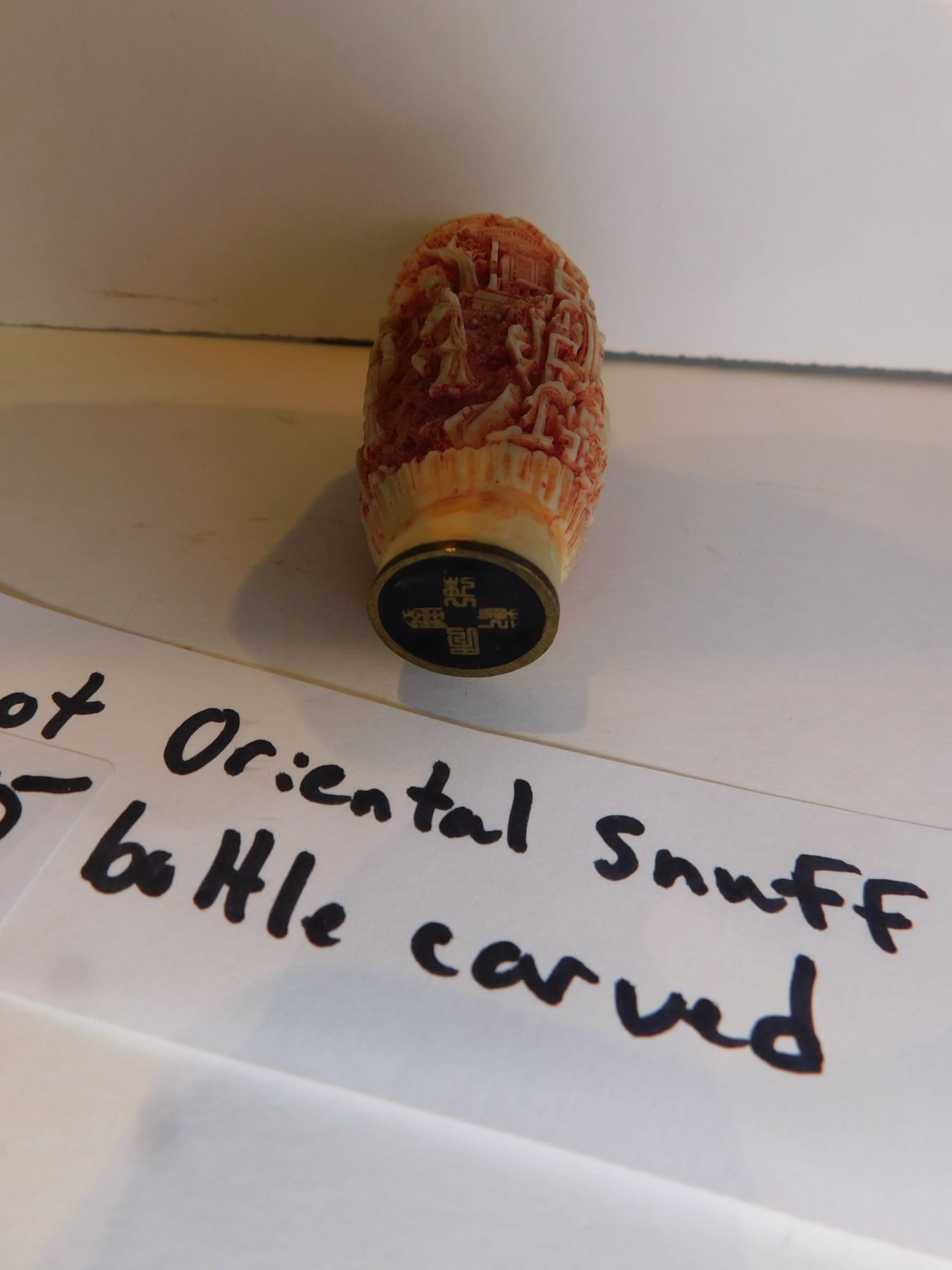 345. ORIENTAL CARVED ANTIQUE SNUFF BOTTLE
