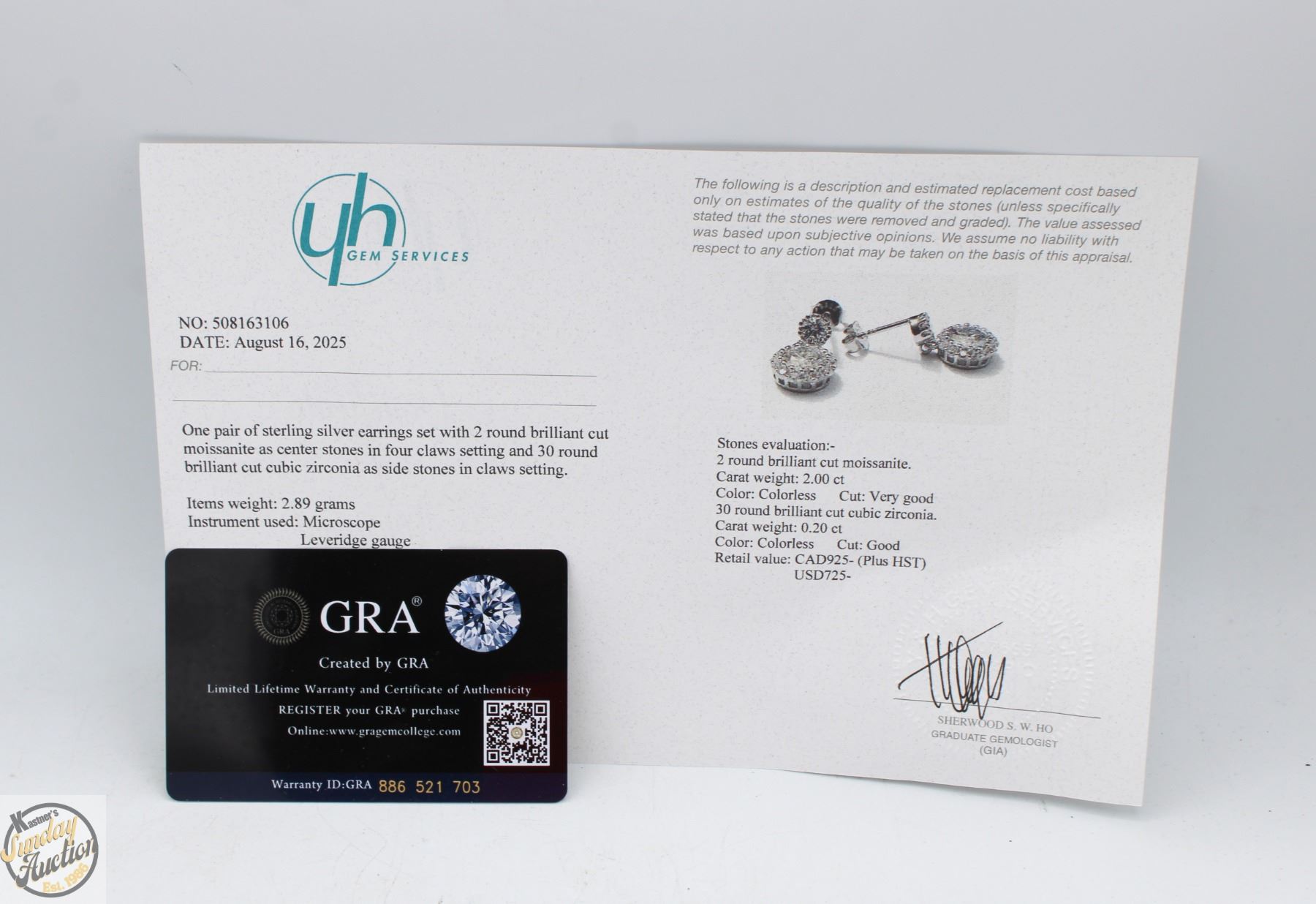 CUT MOISSANITE STONE VVS D COLOR WITH 30 ROUND BRILLIANT CUT CUBIC ZIRCONIA SET IN ROUND HALO SET IN 925 SILVER EARRINGS RETAIL VALUE $925.00 **ALL ITEMS MUST BE REMOVED BY 5PM SATURDAY, NOVEMBER 1ST 2025. ALL REMAINING ITEMS WILL BE SUBJECT TO A $6.00 PER DAY STORAGE CHARGE. ANY ITEMS REMAINING AFTER MONDAY, NOVEMBER 17TH 2025 WILL BE CONSIDERED FORFEITED. NO REFUNDS WILL BE ISSUED FOR FORFEITED ITEMS. TO SCHEDULE A PICK UP APPOINTMENT CLICK HERE