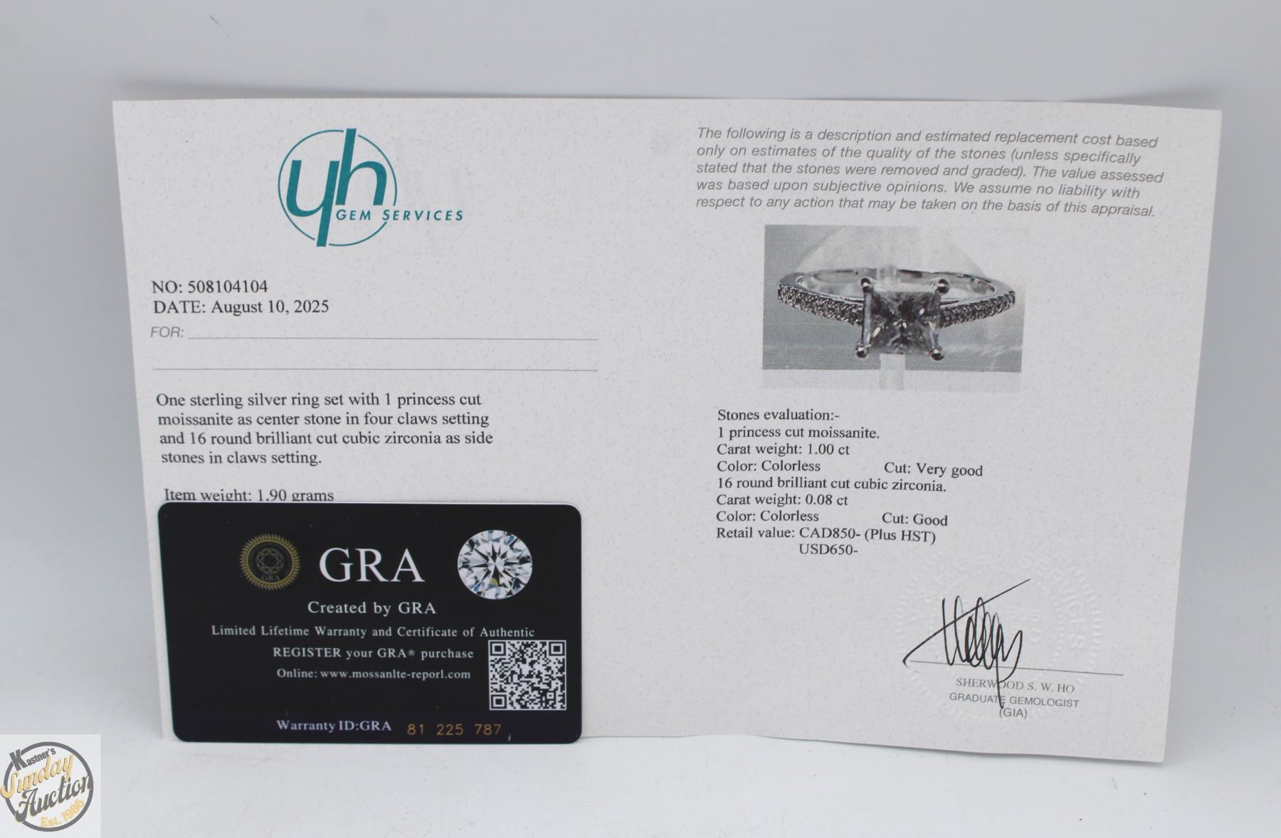 MOISSANITE STONE VVS D COLOR WITH 16 ROUND BRILLIANT CUT CUBIC ZIRCONIA SET IN SHANK SET IN 925 SILVER RING SIZE 6.25 RETAIL VALUE $850.00 **ALL ITEMS MUST BE REMOVED BY 5PM SATURDAY, NOVEMBER 8th 2025. ALL REMAINING ITEMS WILL BE SUBJECT TO A $6.00 PER DAY STORAGE CHARGE. ANY ITEMS REMAINING AFTER MONDAY, NOVEMBER 24TH 2025 WILL BE CONSIDERED FORFEITED. NO REFUNDS WILL BE ISSUED FOR FORFEITED ITEMS. TO SCHEDULE A PICK UP APPOINTMENT CLICK HERE
