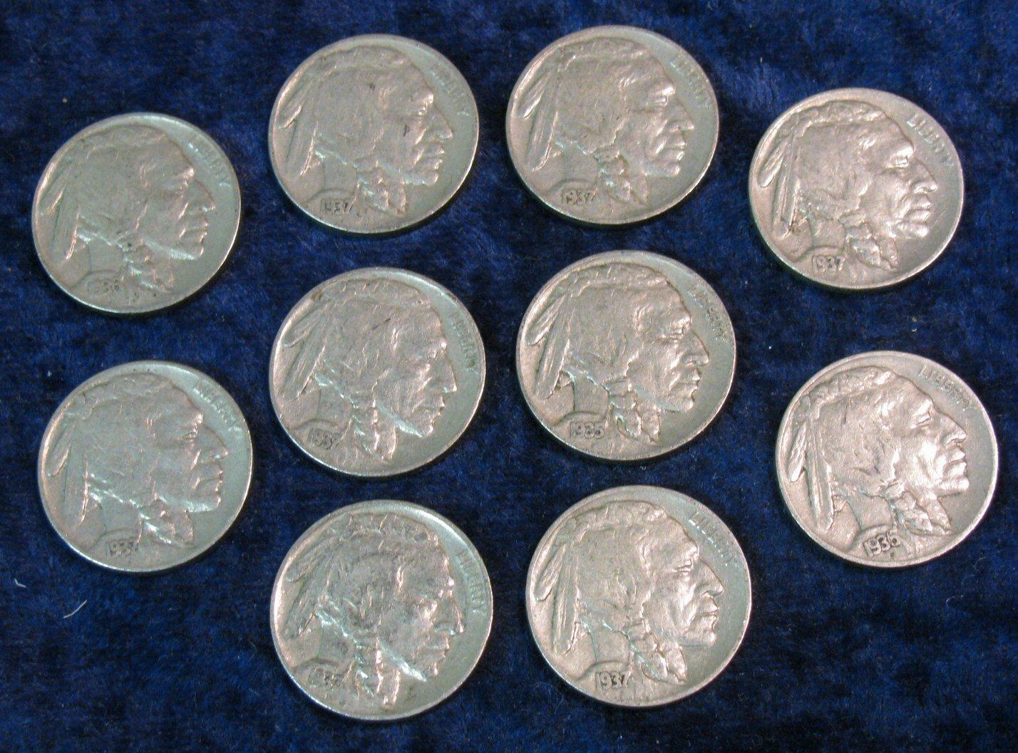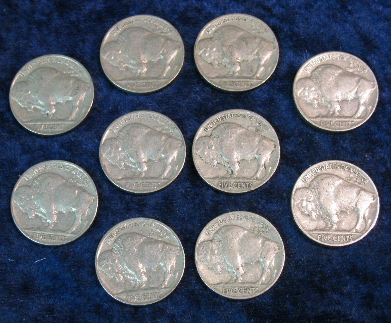 347. (10) F-VF Almost Full Horn Buffalo Nickels.