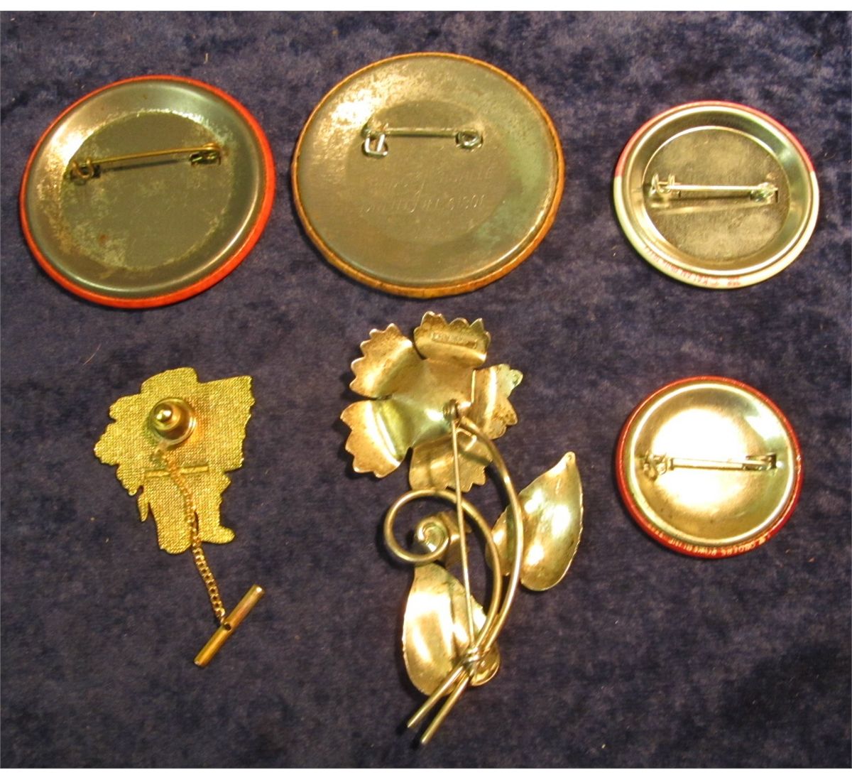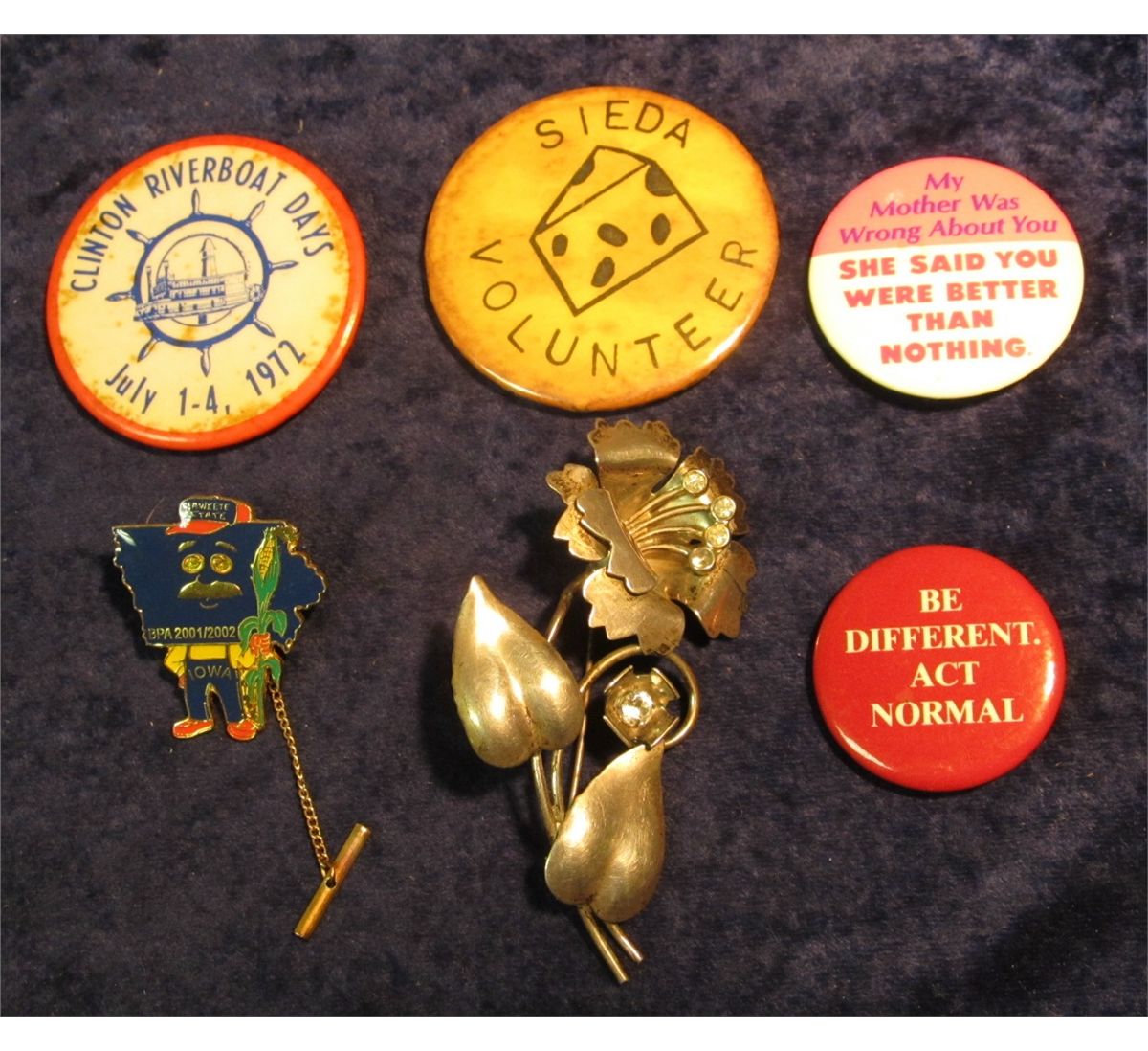 347. Large Sterling Silver Floral Pin (missing one set); Hawkeye State Tie Pin; & (4) Different Pin backs.