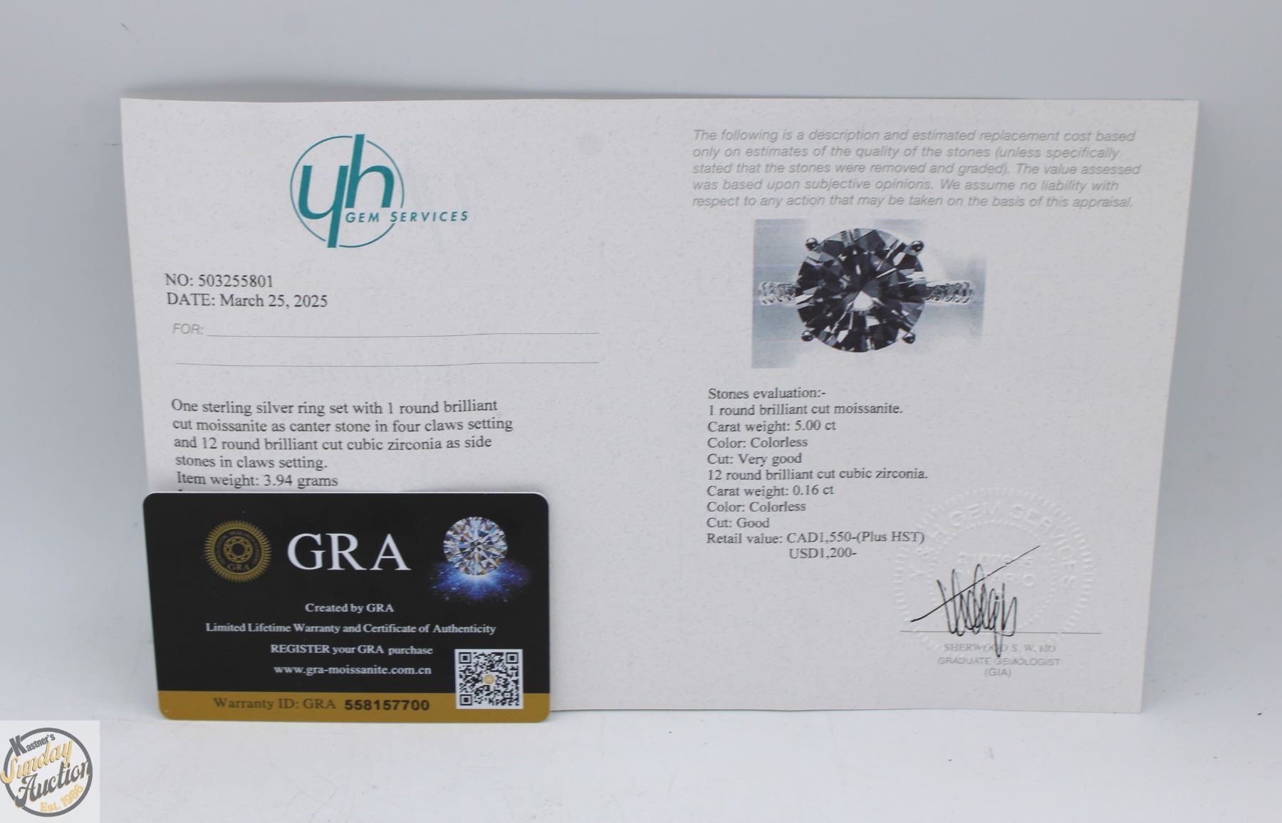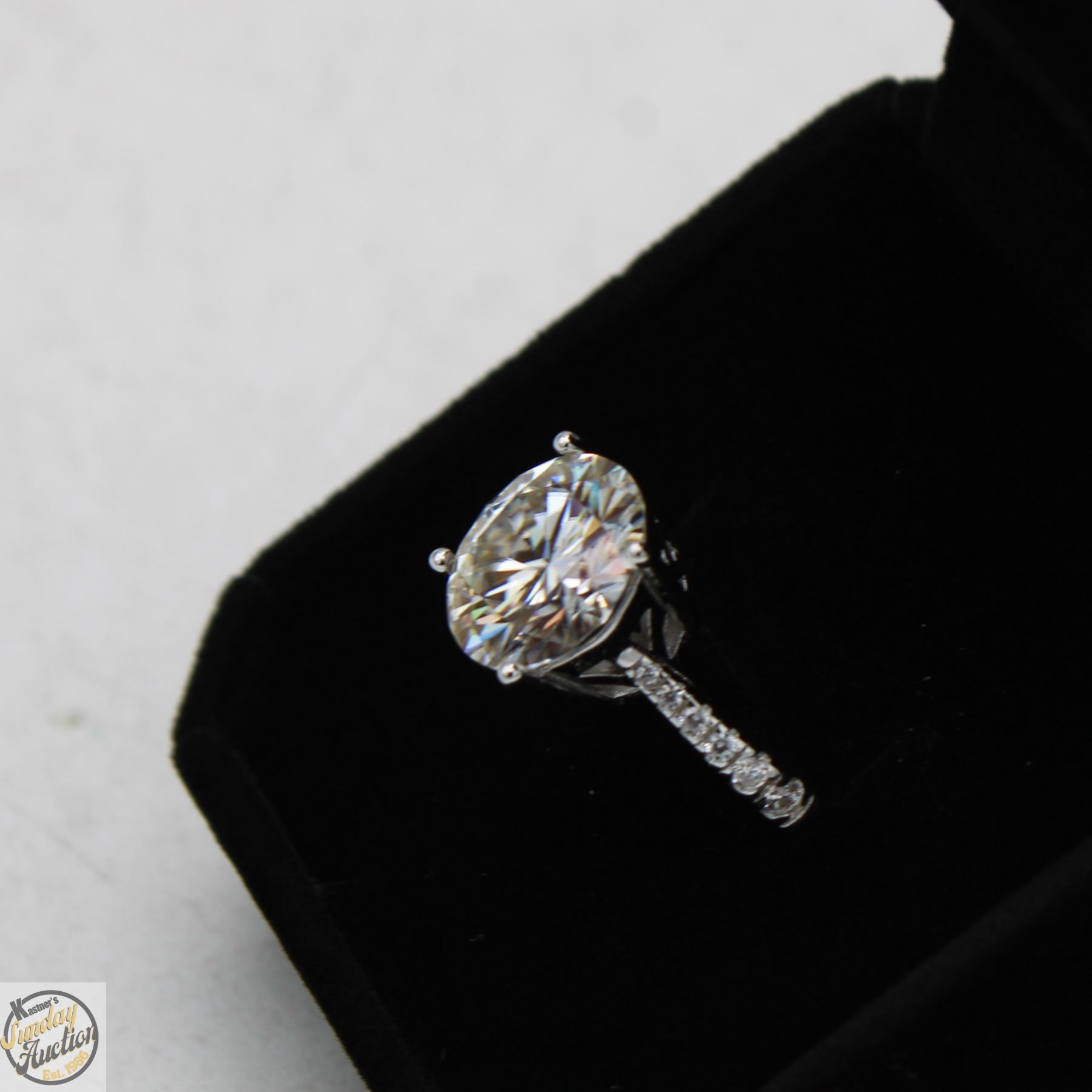 CUT MOISSANITE STONE VVS D COLOR SET IN CENTER WITH 12 ROUND BRILLIANT CUT CUBIC ZIRCONIA SET IN SHANKS SET IN 925 SILVER RING SIZE 6 RETAIL VALUE $1,550.00 **ALL ITEMS MUST BE REMOVED BY 5PM SATURDAY, NOVEMBER 8th 2025. ALL REMAINING ITEMS WILL BE SUBJECT TO A $6.00 PER DAY STORAGE CHARGE. ANY ITEMS REMAINING AFTER MONDAY, NOVEMBER 24TH 2025 WILL BE CONSIDERED FORFEITED. NO REFUNDS WILL BE ISSUED FOR FORFEITED ITEMS. TO SCHEDULE A PICK UP APPOINTMENT CLICK HERE