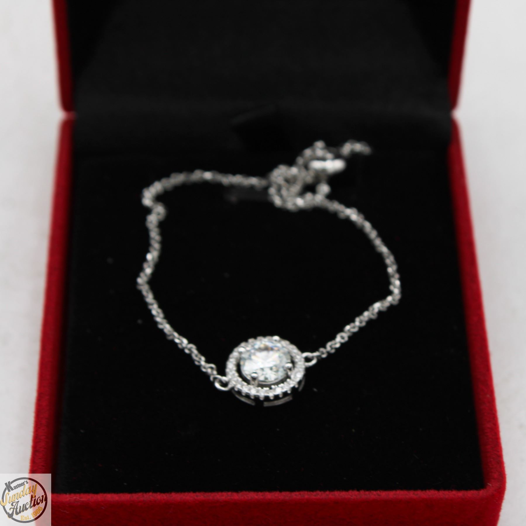 CUT MOISSANITE STONE VVS D COLOR WITH 24 ROUND BRILLIANT CUT CUBIC ZIRCONIA SET IN ROUND HALO SET IN 925 SILVER BRACELET **ALL ITEMS MUST BE REMOVED BY 5PM SATURDAY, NOVEMBER 29TH 2025. ALL REMAINING ITEMS WILL BE SUBJECT TO A $6.00 PER DAY STORAGE CHARGE. ANY ITEMS REMAINING AFTER MONDAY, DECEMBER 15TH 2025 WILL BE CONSIDERED FORFEITED. NO REFUNDS WILL BE ISSUED FOR FORFEITED ITEMS. TO SCHEDULE A PICK UP APPOINTMENT CLICK HERE