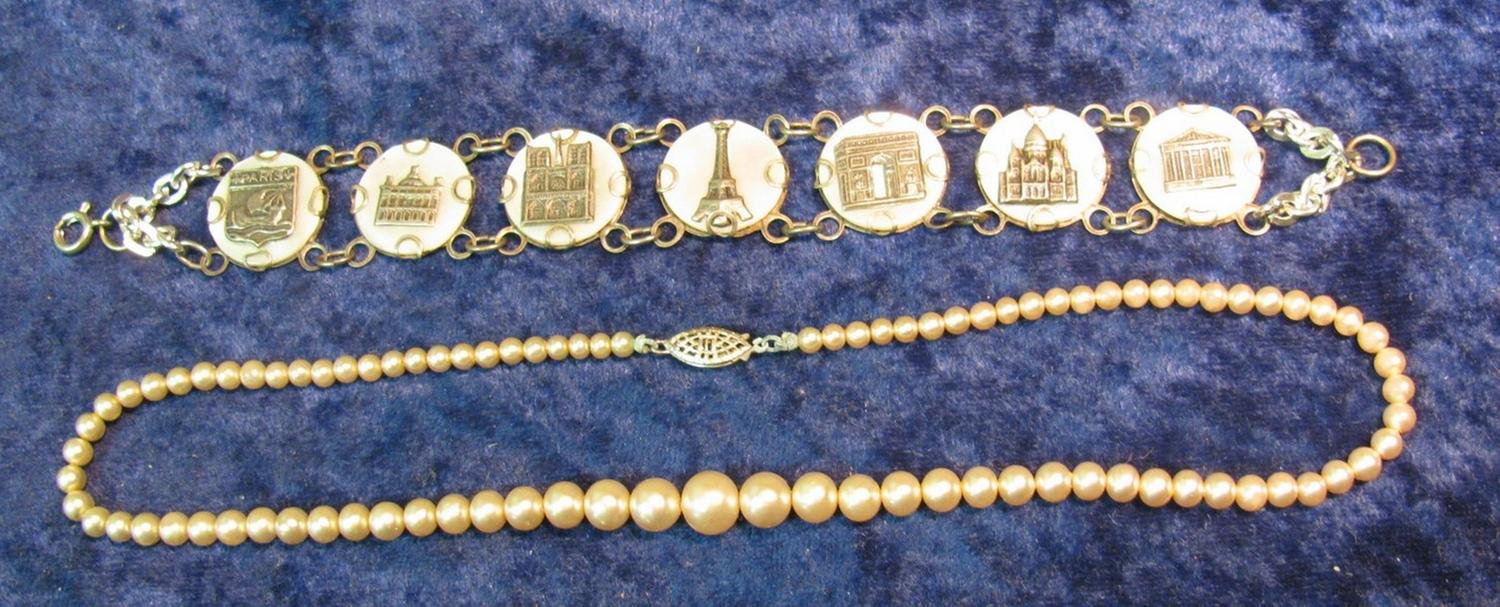 348. 15" Simulated Pearl Necklace & a very intricate Paris