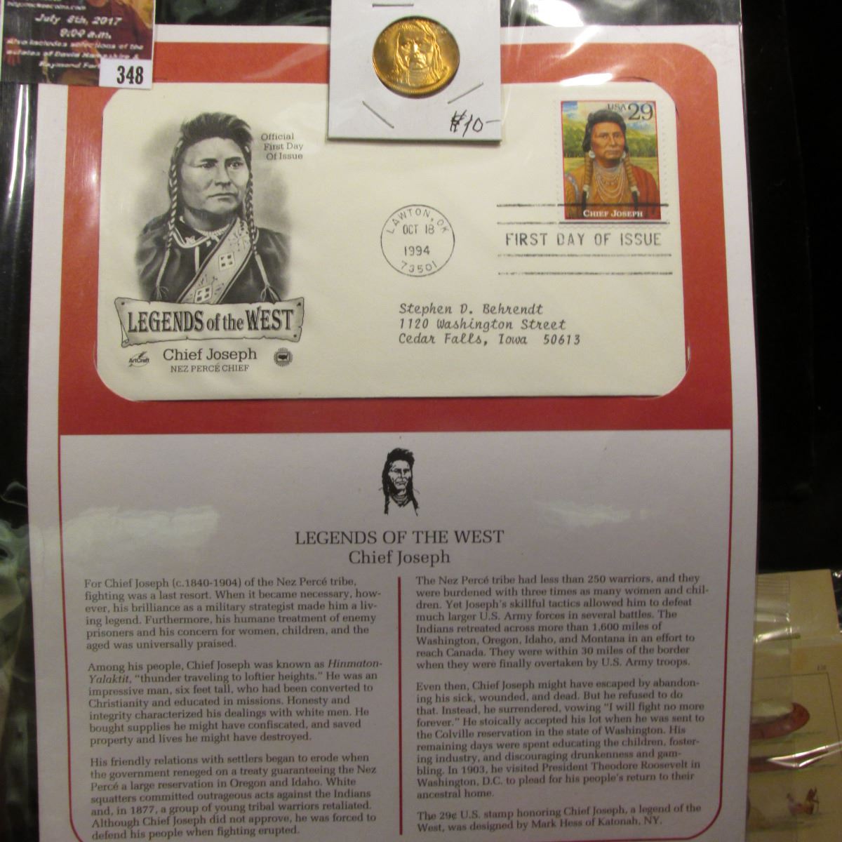 348."Chief Joseph" Medal and 1994 First Day of Issue Stamped and postmarked Cover.