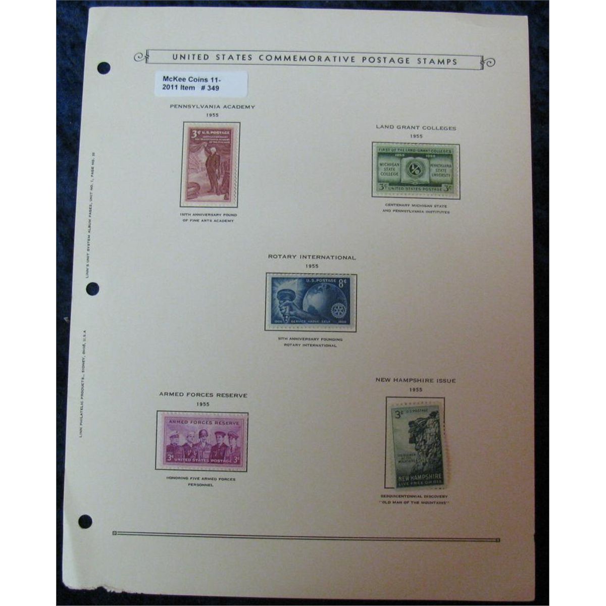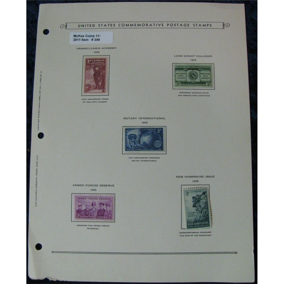 349. Group of (5) Mint Unused 1955 U.S. Commemorative Stamps.
