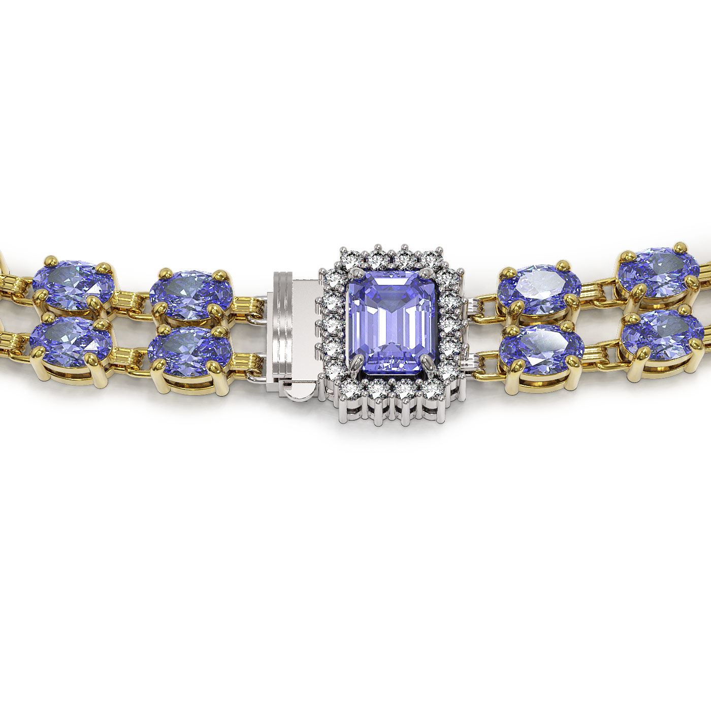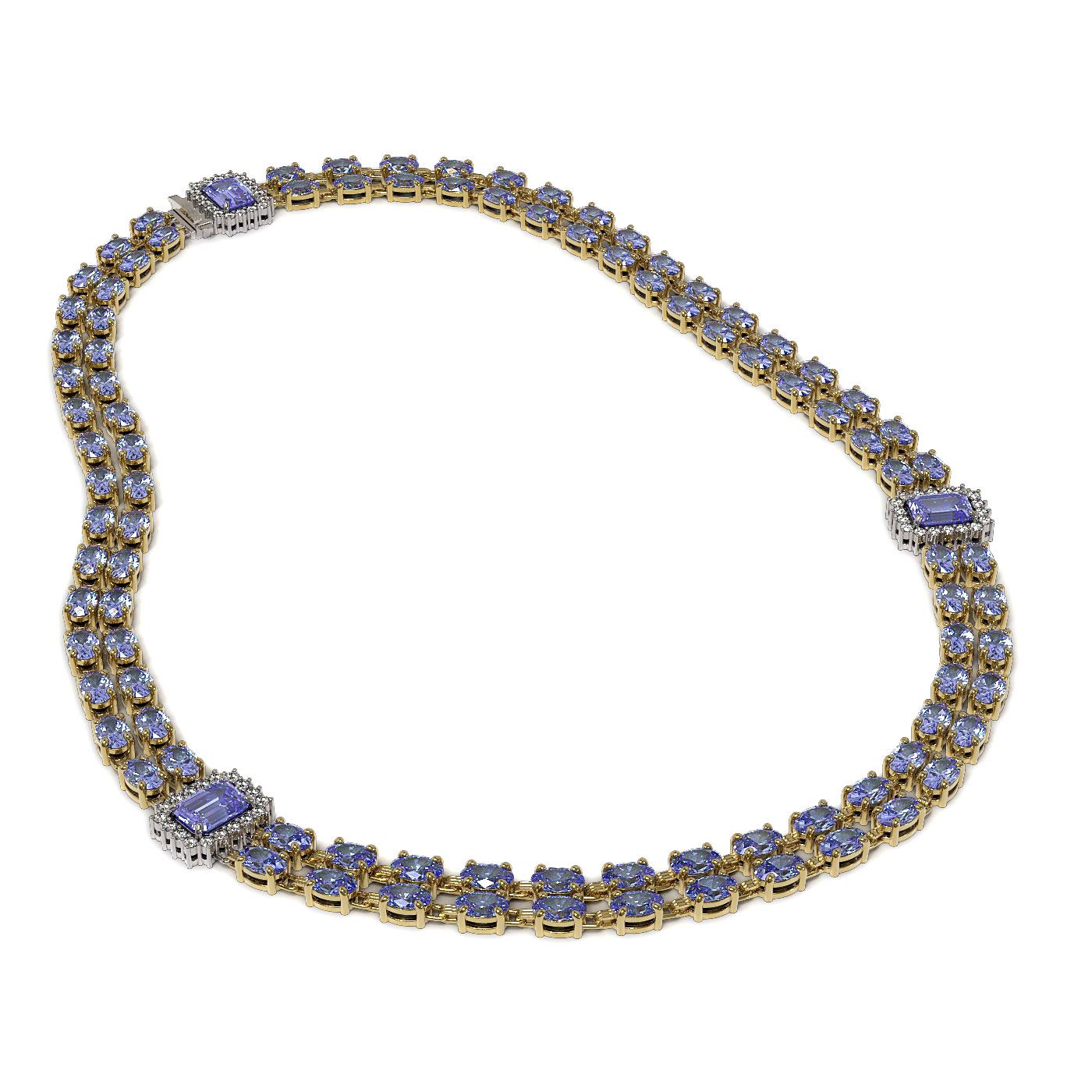 REF-527H3R - SKU: 44977 ---- 35.32 ctw Tanzanite & Diamond Necklace 14K Yellow Gold