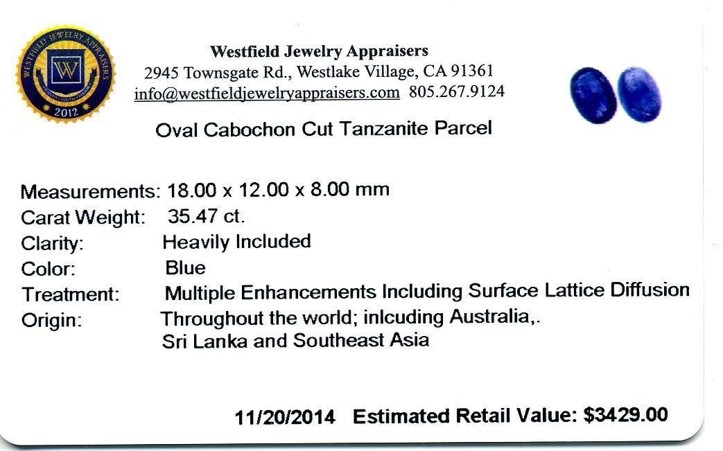 35.47ctw. Oval Cabochon Tanzanite Parcel. Westfield Appraised at $3,429.00.