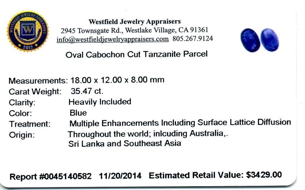 35.47ctw. Oval Cabochon Tanzanite Parcel. Westfield Appraised at $3,429.00.