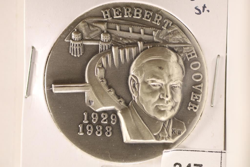 HOOVER PRESIDENTIAL ROUND, ANTIQUE FINISH, UNC, 1.05552 OZ. ASW